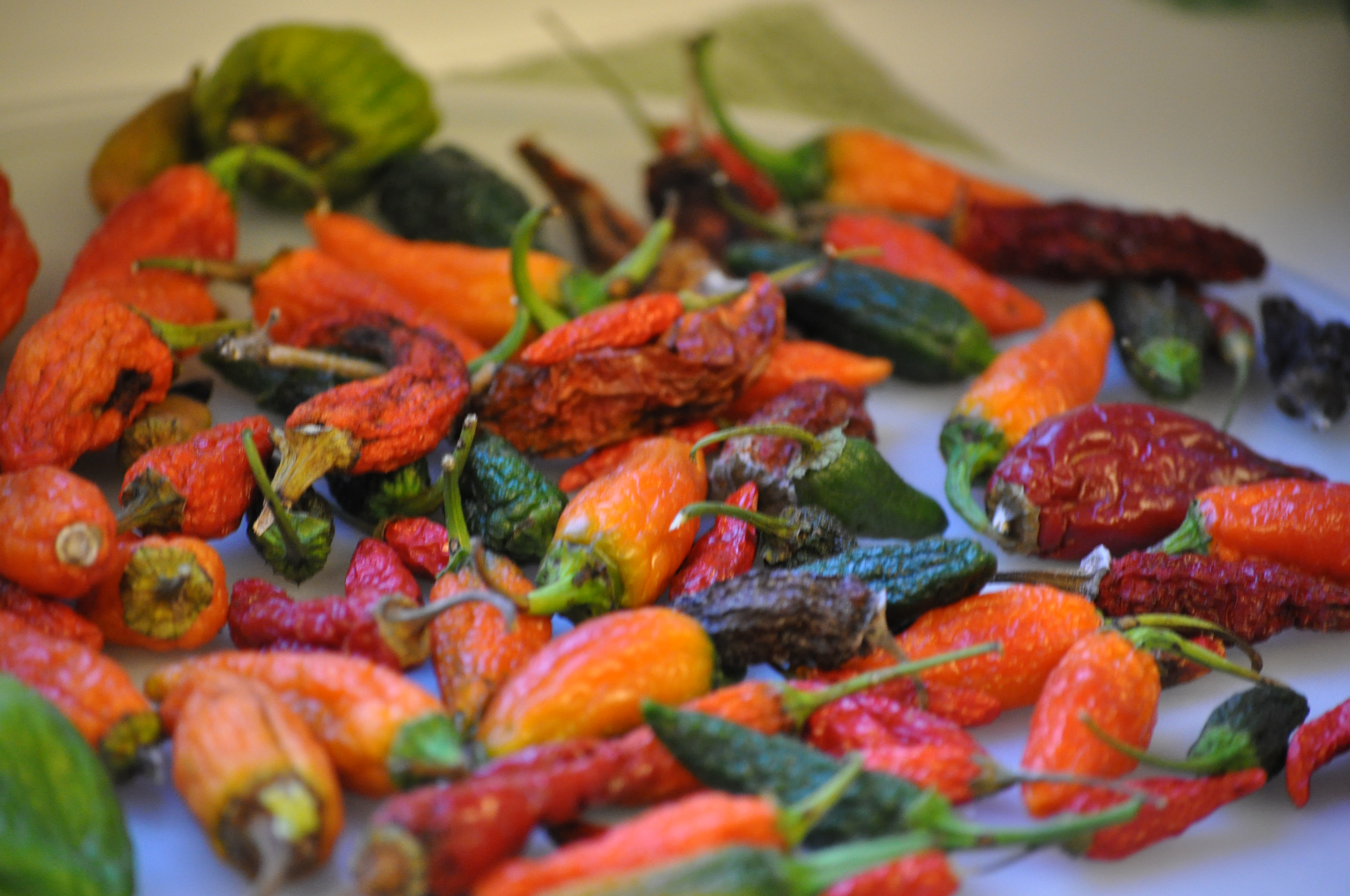 Garlic and jellies around, and some gifts from friends who traveled, like blueberry chutney. Honey from the bee hives where I volunteer.