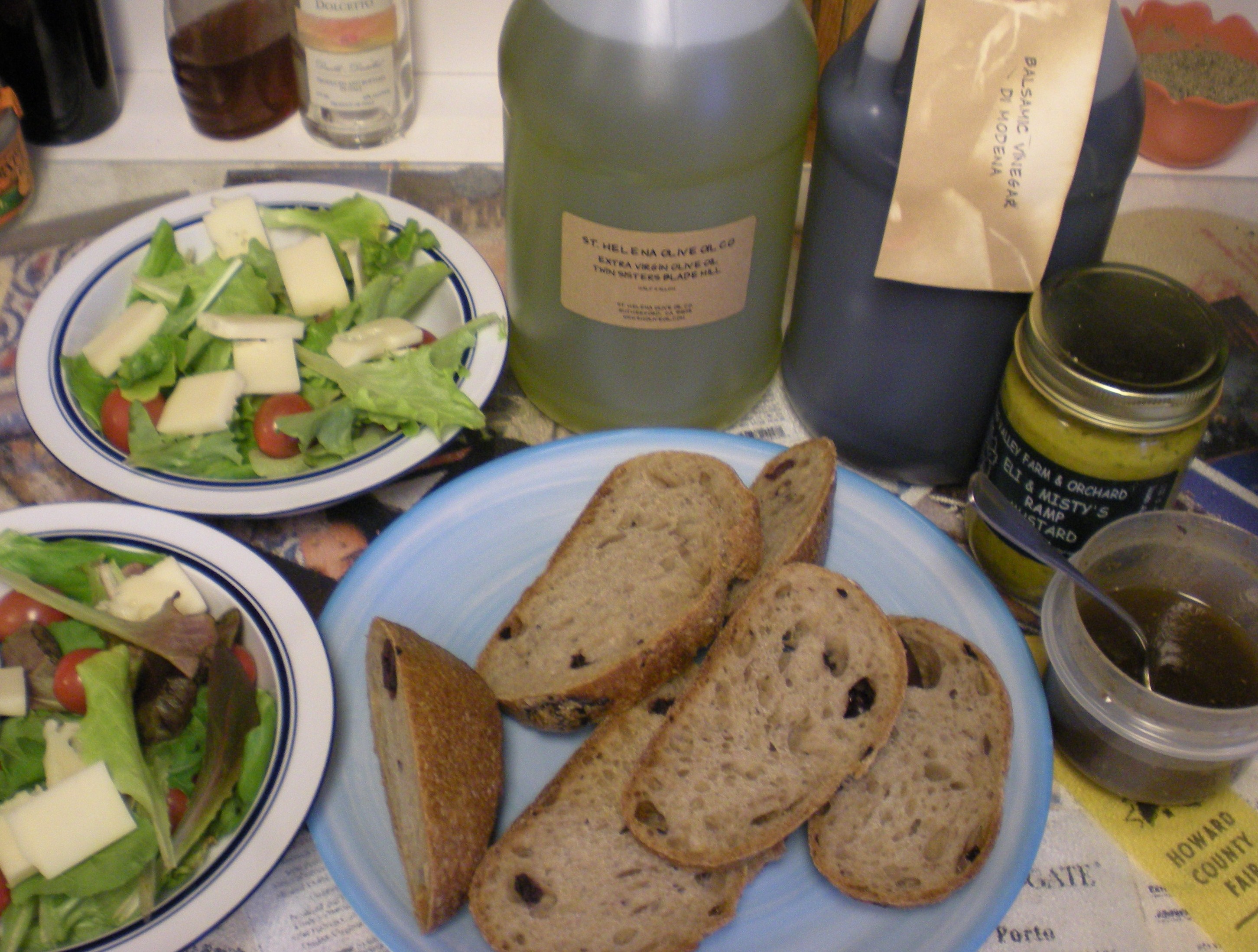 The star of the meal, though, was the salad. Mock’s Greenhouse Bibb lettuce with red onion, Firefly Farms mountain blue cheese, and non-local olives. A homemade vinaigrette from the St. Helena oil and vinegar, with ramp mustard, yogurt and honey.