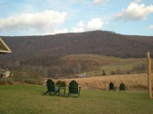 We then wandered down to Glen Manor, sitting just below Shenandoah National Park and the Skyline Drive. From the description above of Linden’s Claret, you can see that Jeff White used to grow grapes for Jim at Linden, but for the past few years has opened his own winery. His setting is even more spectacular, and you can sit outside and watch the cars far up in the hills driving the Skyline Drive.