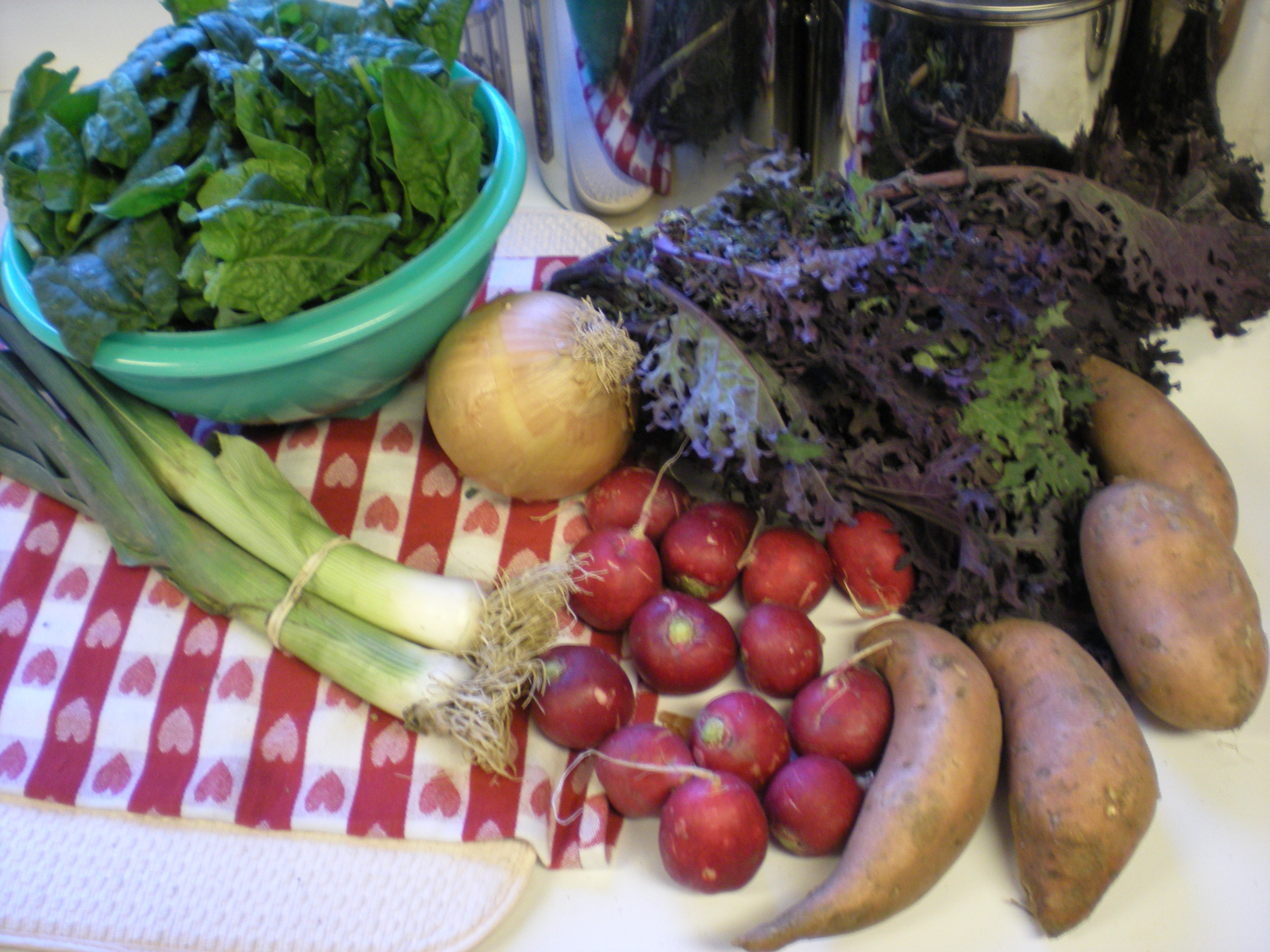 Come this May will mark our second year with the cooperative of 70-80 organic farmers around Lancaster, including Mother Earth mushrooms. Until then, though, I am eating lots of greens, onions, potatoes, leeks, chard, cauliflower and broccoli. Eating seasonally is something many of us stopped doing when year round veggies from all over the world came into our chain supermarkets.