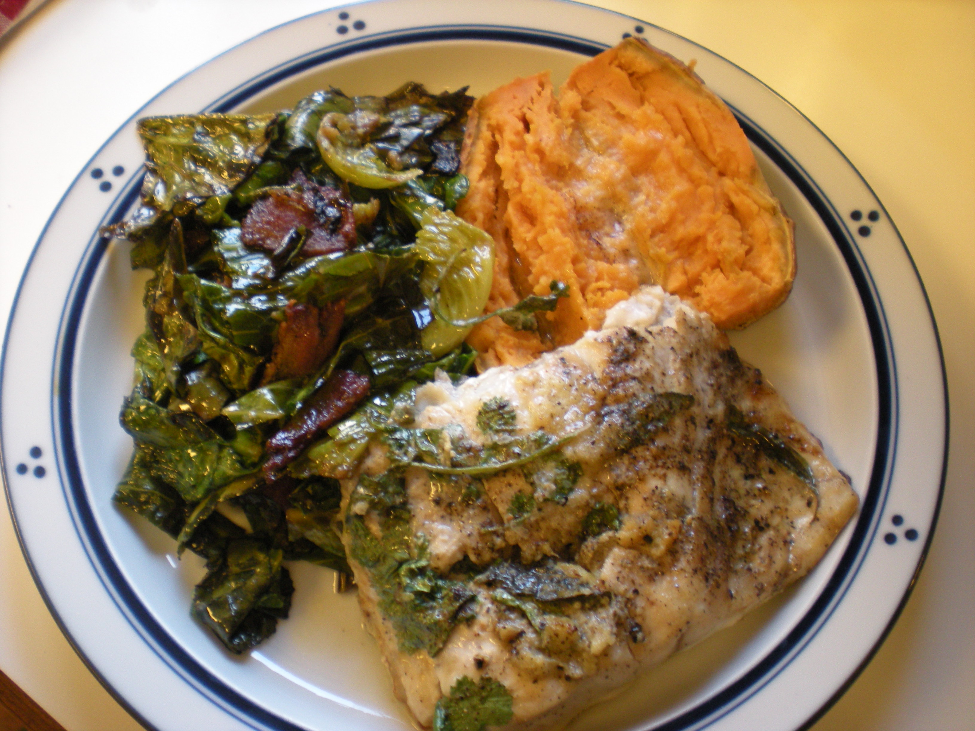 We poured a glass of Linden Chardonnay from VA and buttered some some Atwater’s Bread, making this a completely local meal except for the salt and pepper.
