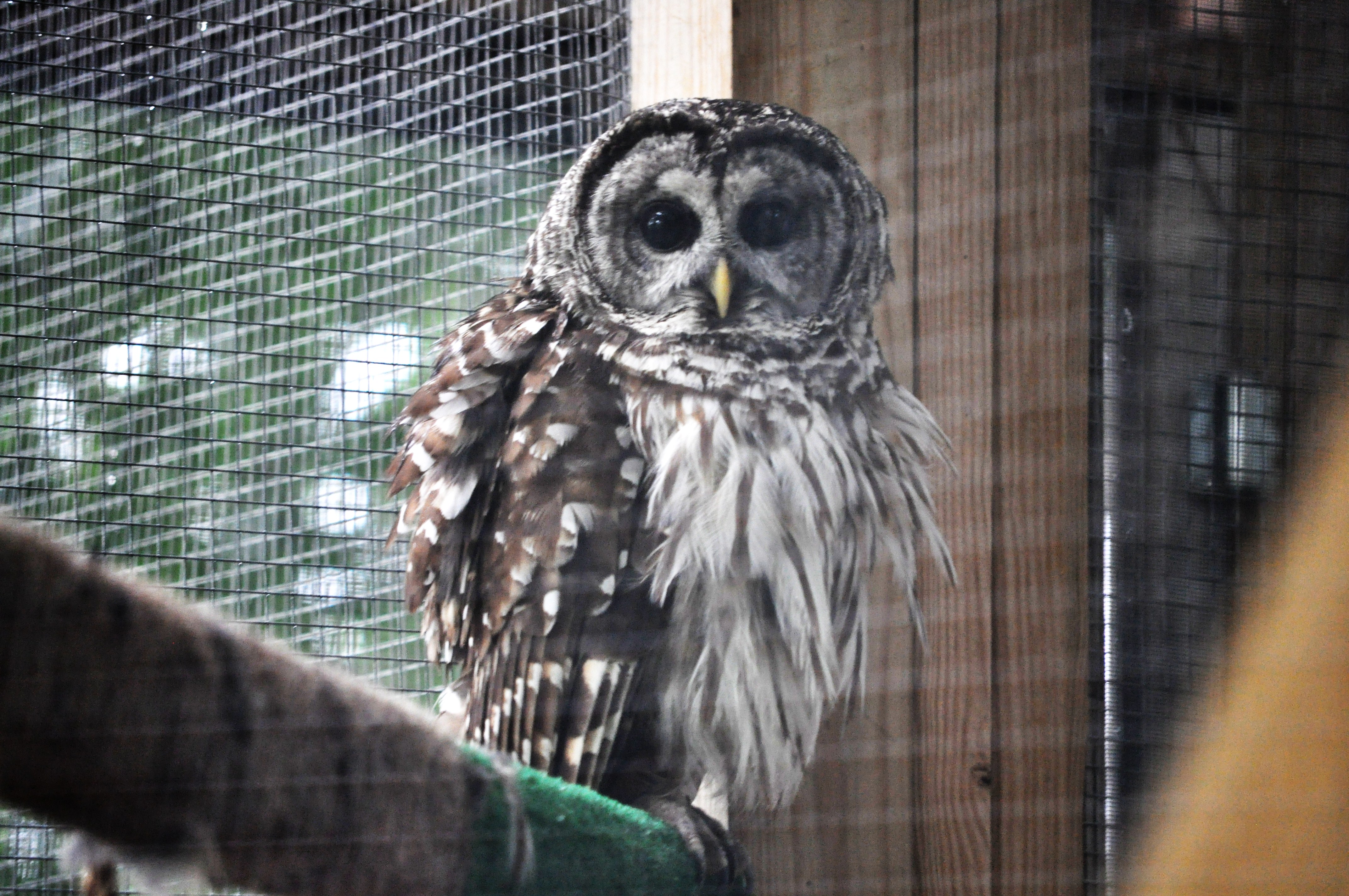 We went to visit Ranger, our rescued barred owl who was out last night visiting a County library, I hear.