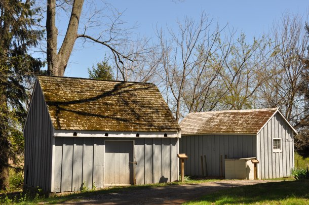 There are numerous outbuildings as well. Many of these are in stages of preservation. Some are used for demos. Besides the ones I picture, there is a carriage house, a corn crib, a bank barn, and wagon shed. One of the two coops now holds the resident chickens.