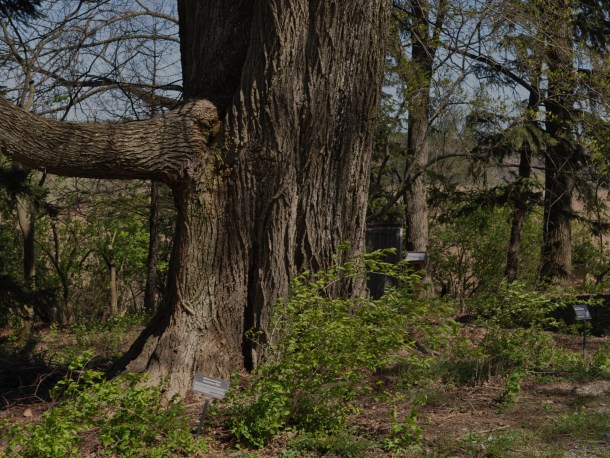 Finally, stop in and get the arboretum guide, and you will find trees on site that are beautiful specimens like this American Elm behind the farmhouse, and while back there look carefully and find the outhouse and the foundation for the ice house. Lots of history on the property. So much to discover on your own, or on one of the Conservancy wonder walks. I volunteer here and never get tired of exploring the trails, walking the pathways, visiting the chickens and goats, looking for birds, or just chilling out.