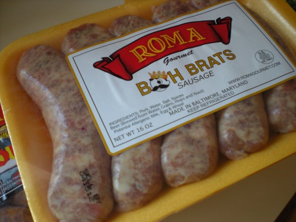 Thanks to Nicole at Hoco Loco for commenting that she saw Meyer Lemons at David’s. Yesterday we made it there to do some shopping that included locally made sausages and the aforementioned lemons. Looks like National Boh Brats on the grill this weekend maybe. Made in Baltimore.