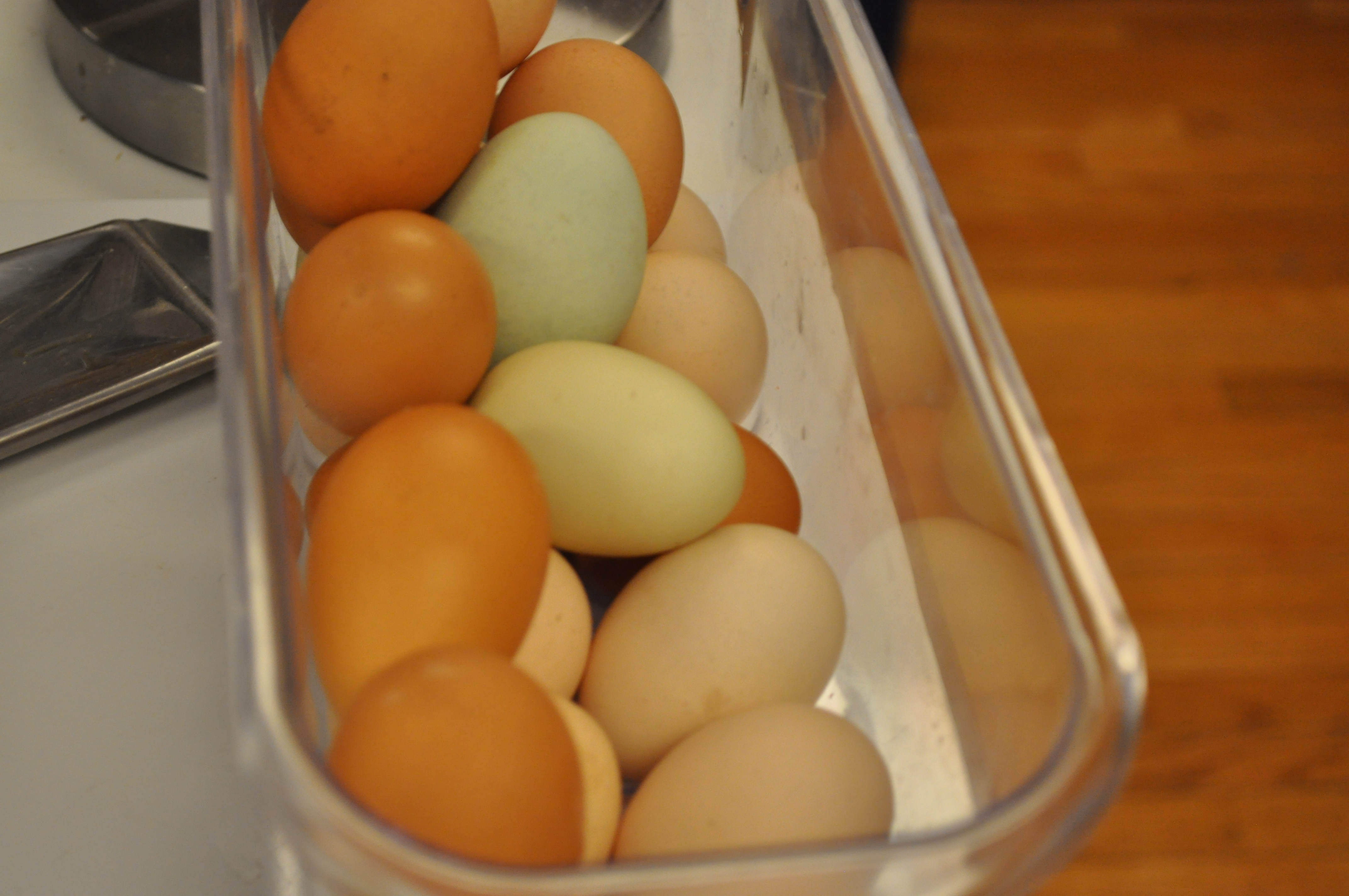 Gradually working our way through the eggs in the fridge. Time to make some egg salad for sandwiches this week, or a frittata with that spinach from the CSA last Friday. Two more weeks of home delivery.