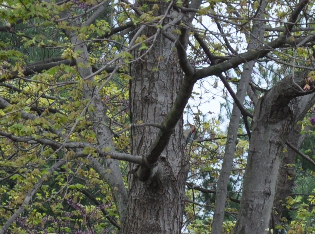 So is my red bellied, but he decided to run up the tree when he saw the glint of the camera. Can you find him up there?