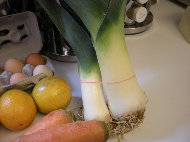 As for making beef stock, I chopped up the ugliest carrots, used up the celery and last week’s leeks, and the end of last week’s spring onions to make the base.