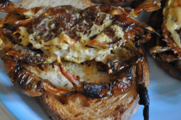 This is the second night we had really good dinners. Yesterday I did soft shell crabs for him.