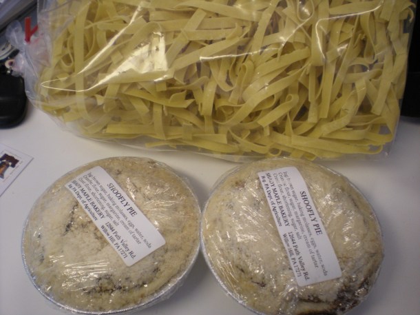 I picked up a couple small shoofly pies from the Amish vendors along with some homemade egg noodles. Nice market. Not big, but with a few really good vendors. If you live in South HoCo, not far away at all. These pies will be dessert later tonight with some High’s vanilla ice cream.