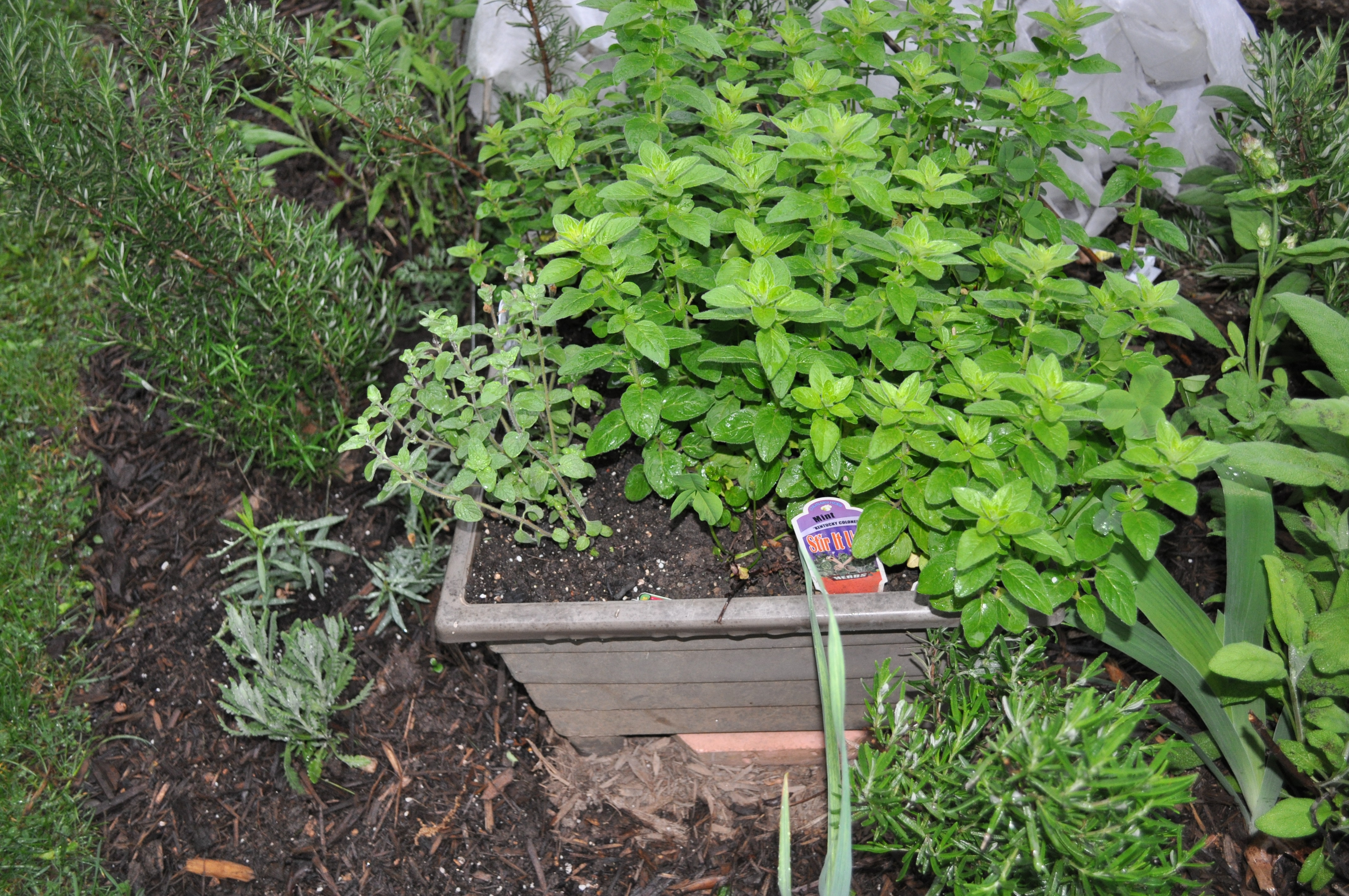 Going full bore, and so good to use. Notice the cover in the background protecting the basil overnight. It is doing well, even though planted a little early. Sage, rosemary, lavender, tarragon, marjoram, thyme and mint. Really easy to grow.