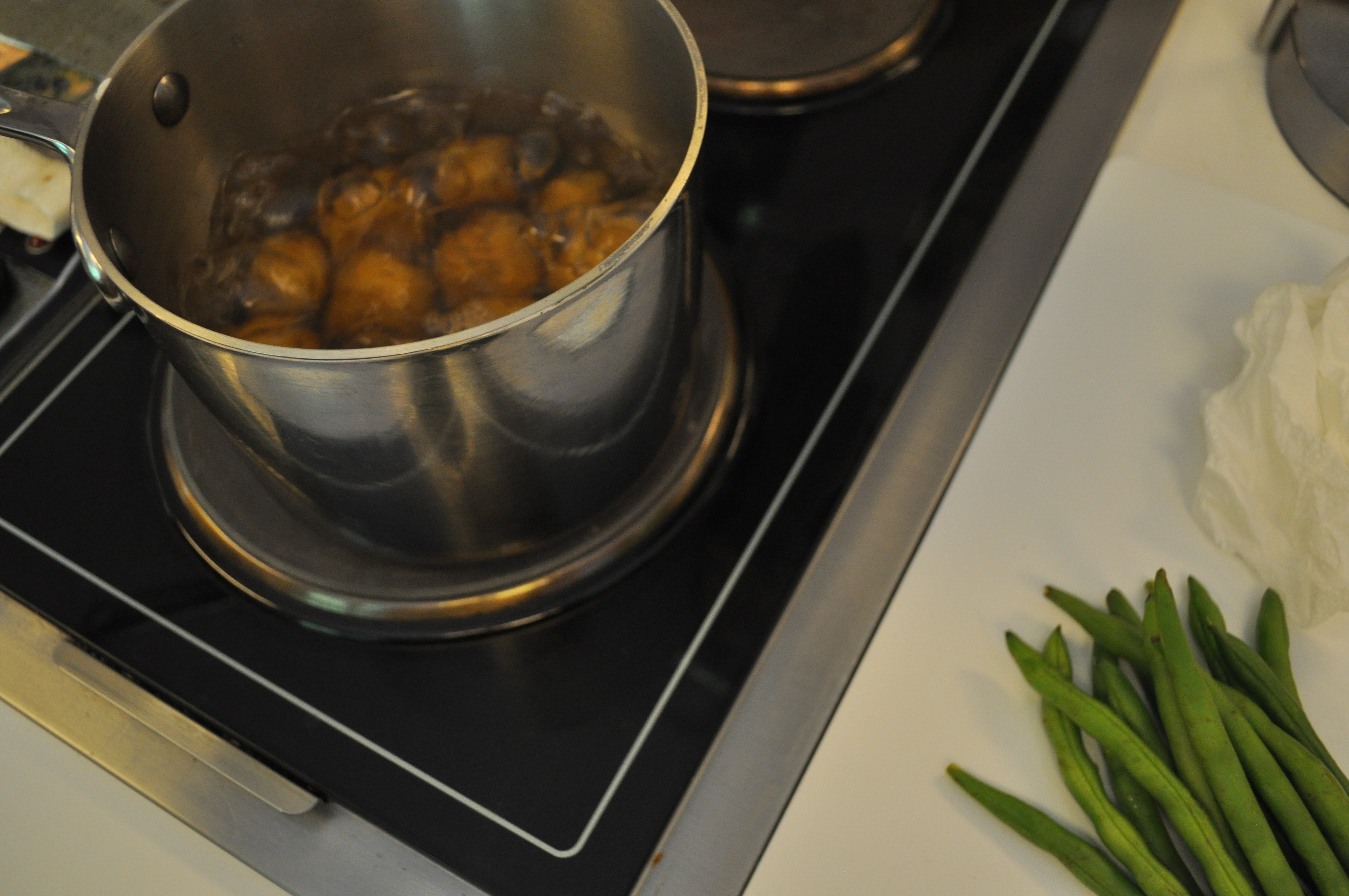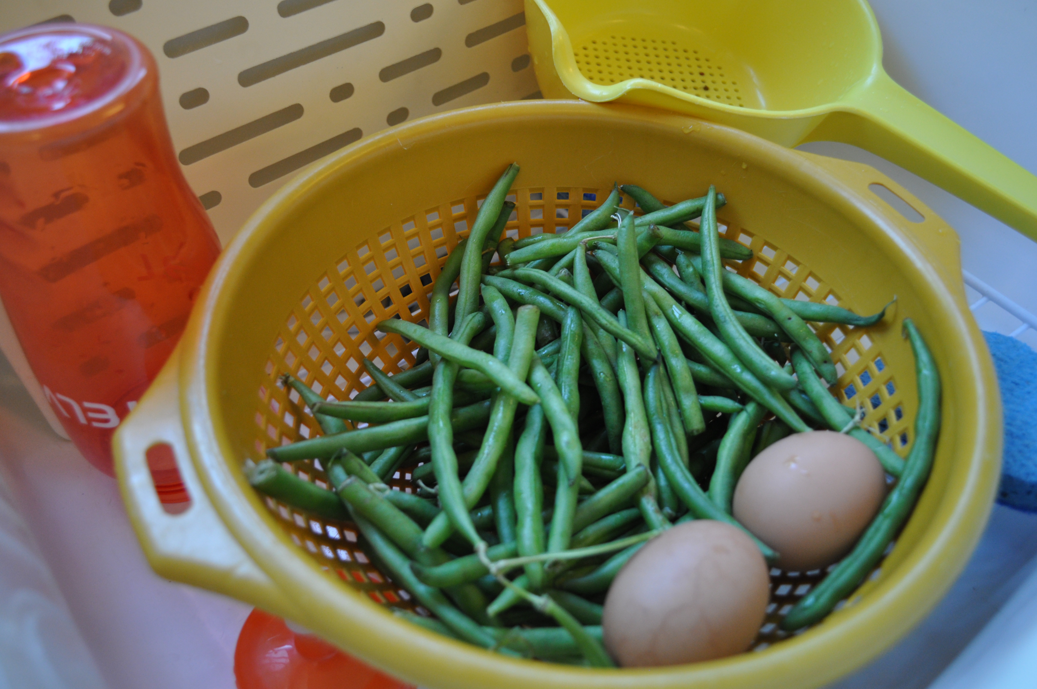 I did boil some new potatoes and then steam some green beans to make a salad for tomorrow’s picnic. Adding some tzatziki to them to make simple potato salad.