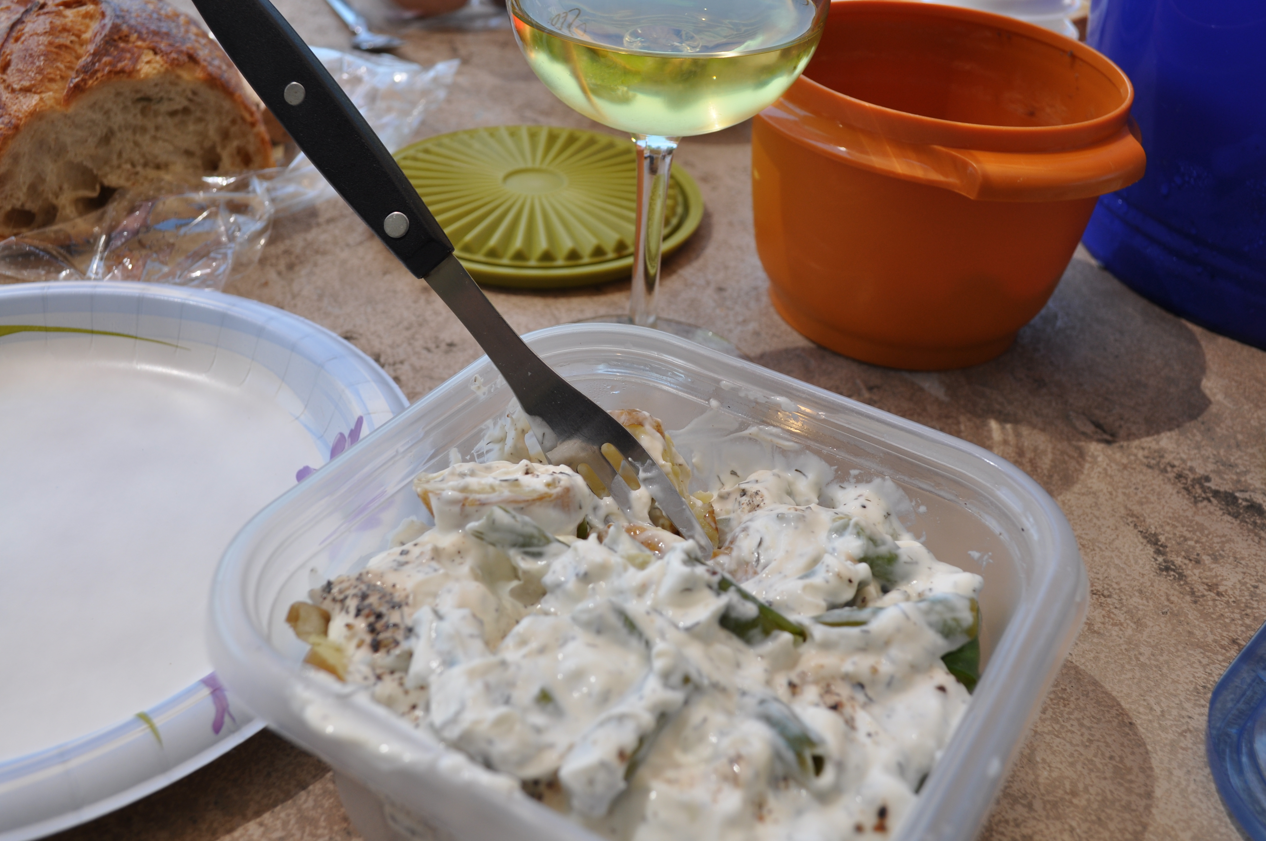 Some potato, green bean and English pea salad. Just like this one from last week, with tzatziki.