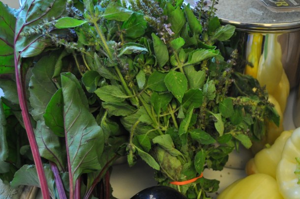 Tulsi. Never heard of it until it showed up in our CSA box. Smells interesting.