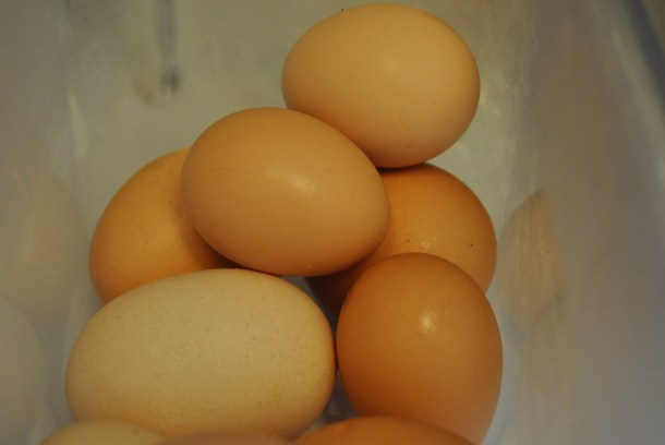 The little ones are pullets from England Acres, hand picked right out of the basket the day that the hens laid the eggs. The really large one is an extra large from my dozen last week from TLV, bought at the hospital market.