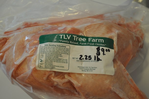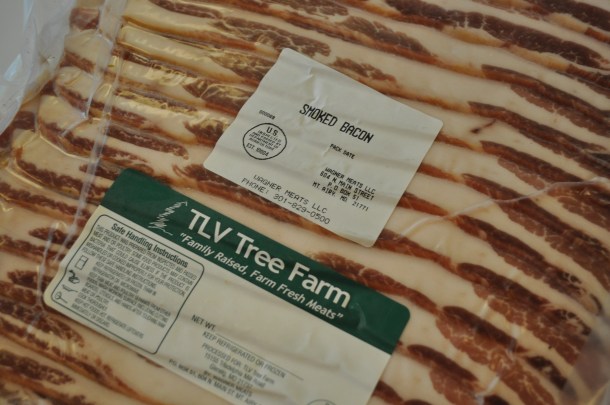 Local meats have become very easy to find these days. Besides England Acres, I buy much of my meat from TLV at the Howard County farmers markets. Like bacon, and chicken.