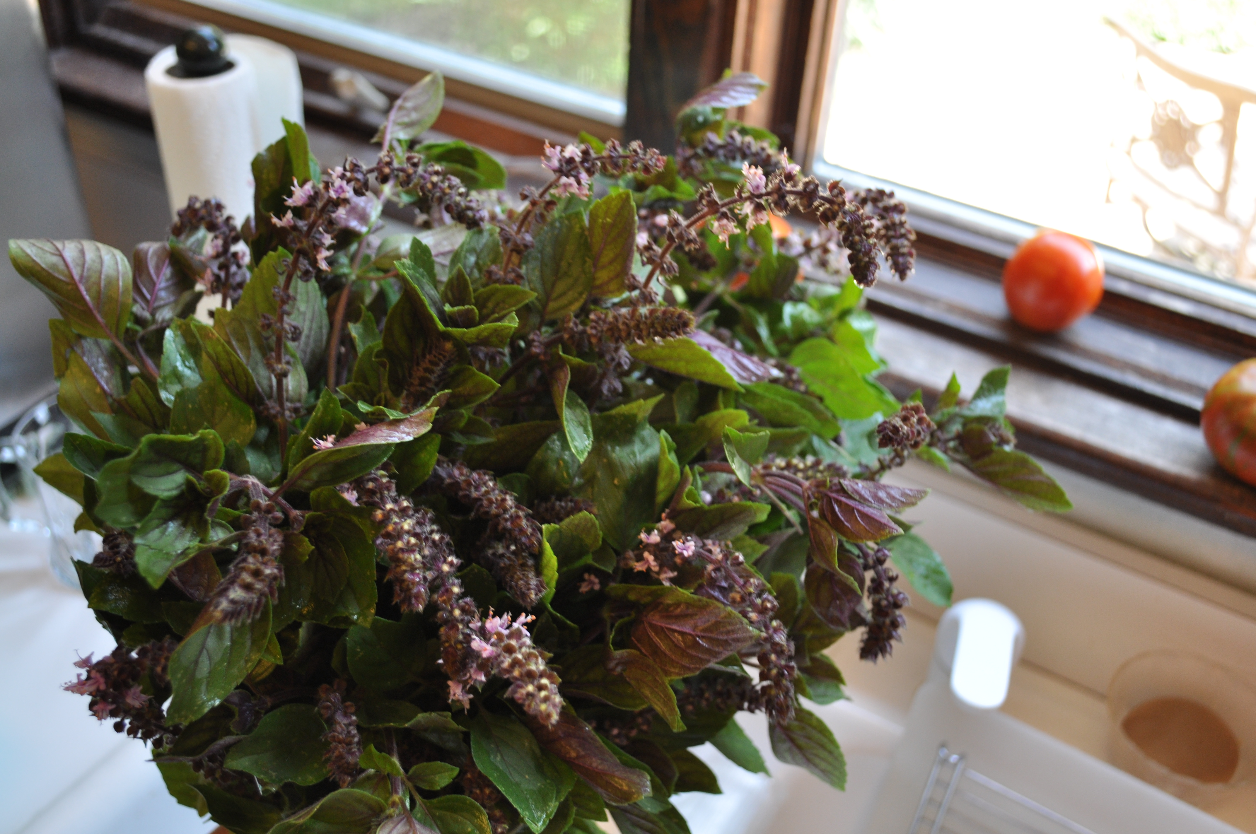 The garden is giving me lots of good herbs and tomatoes this year. Hopefully the little green tomatoes out there will continue to ripen and give me tomatoes to marry with the basil, far into the fall.
