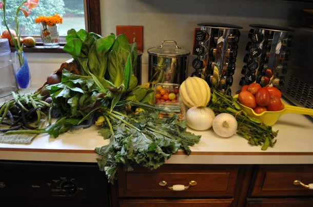 We are heading towards fall. At least the veggies are changing. Our box had some lettuce in it this week, and kale. Here is what it looked like, but there still is summer goodness in there.