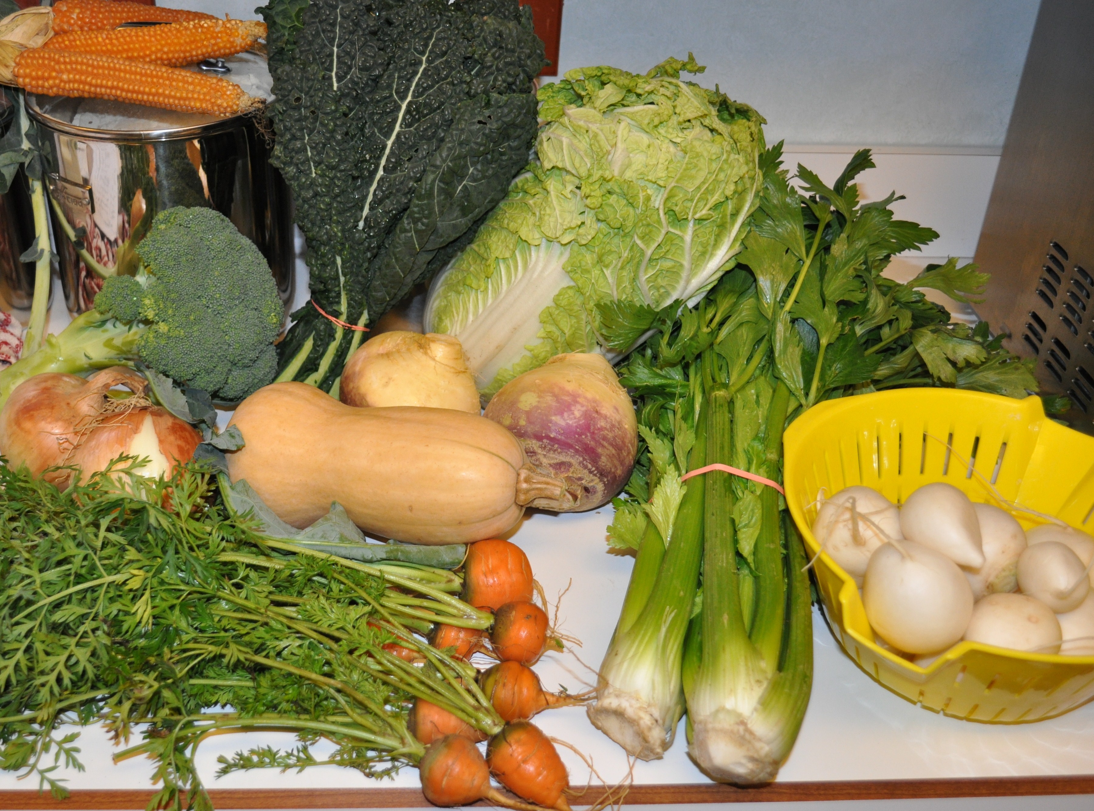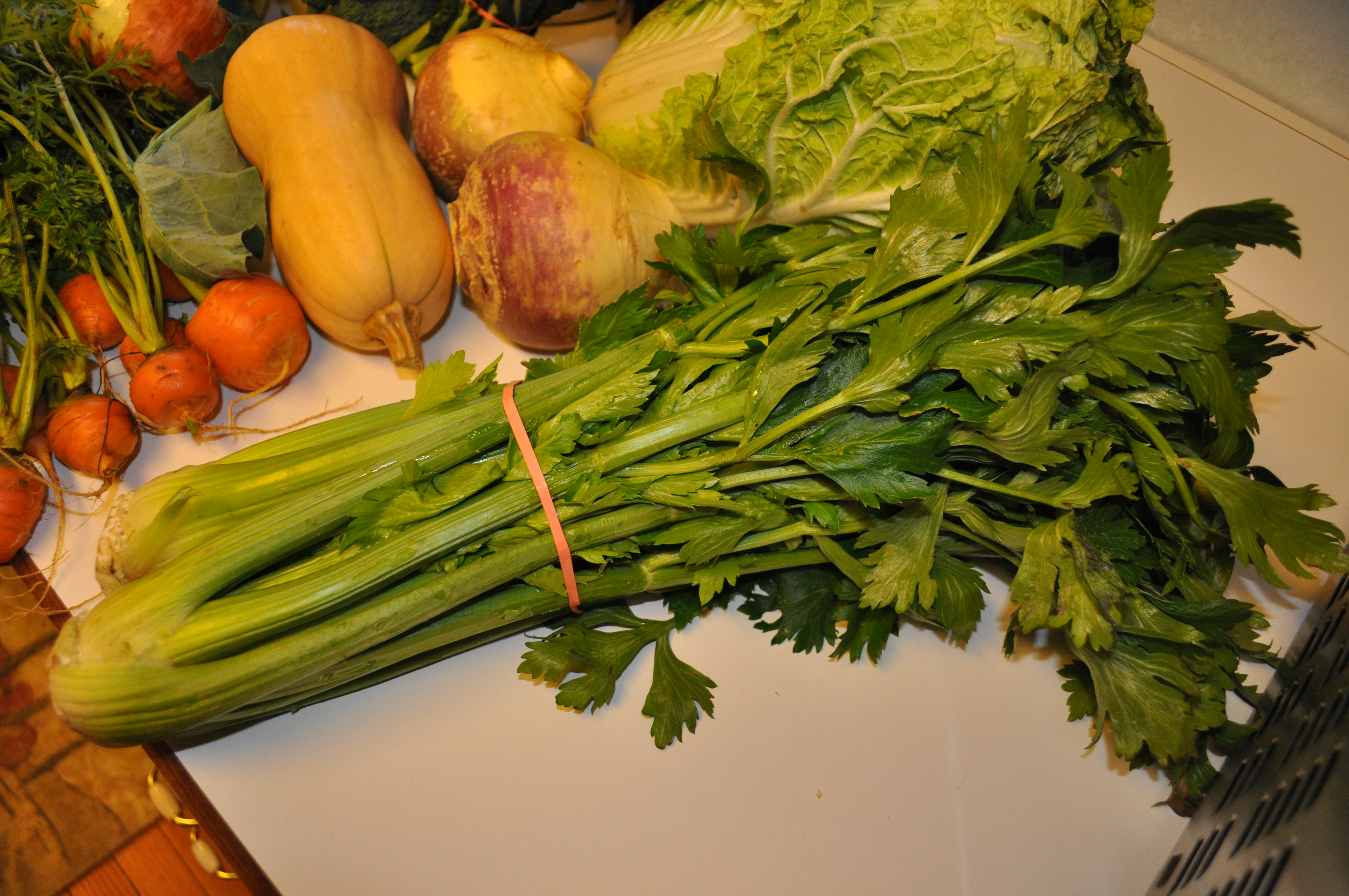 The added up cost for this week is $49.65. Cost for a share $31.25 a week. Add to last week where it was $42.22 (remember we lost a week due to Sandy), total is now $91.87. I think. I may need to check my math but it looks like after week 3 we are almost even with what we pay. Down only $2. If they keep adding amounts like they did this week, twice the celery as originally stated. A very large amount of turnips. We should be way ahead by Christmas, as is usually the case with this CSA.
