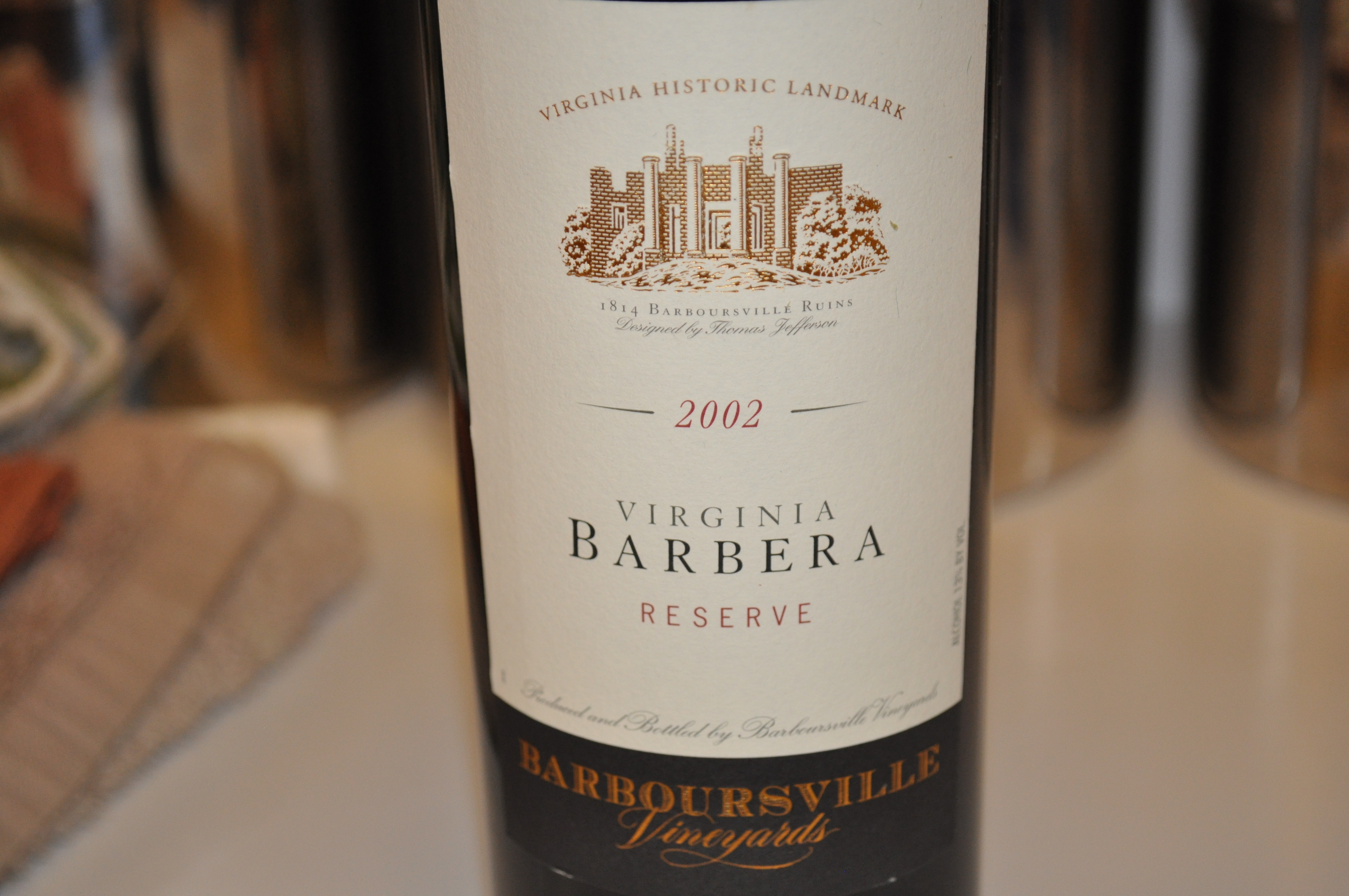 I didn’t take pics of the dinner plate, but I want to show the killer wine we served with it. A 2002 Barboursville Barbera Reserve.