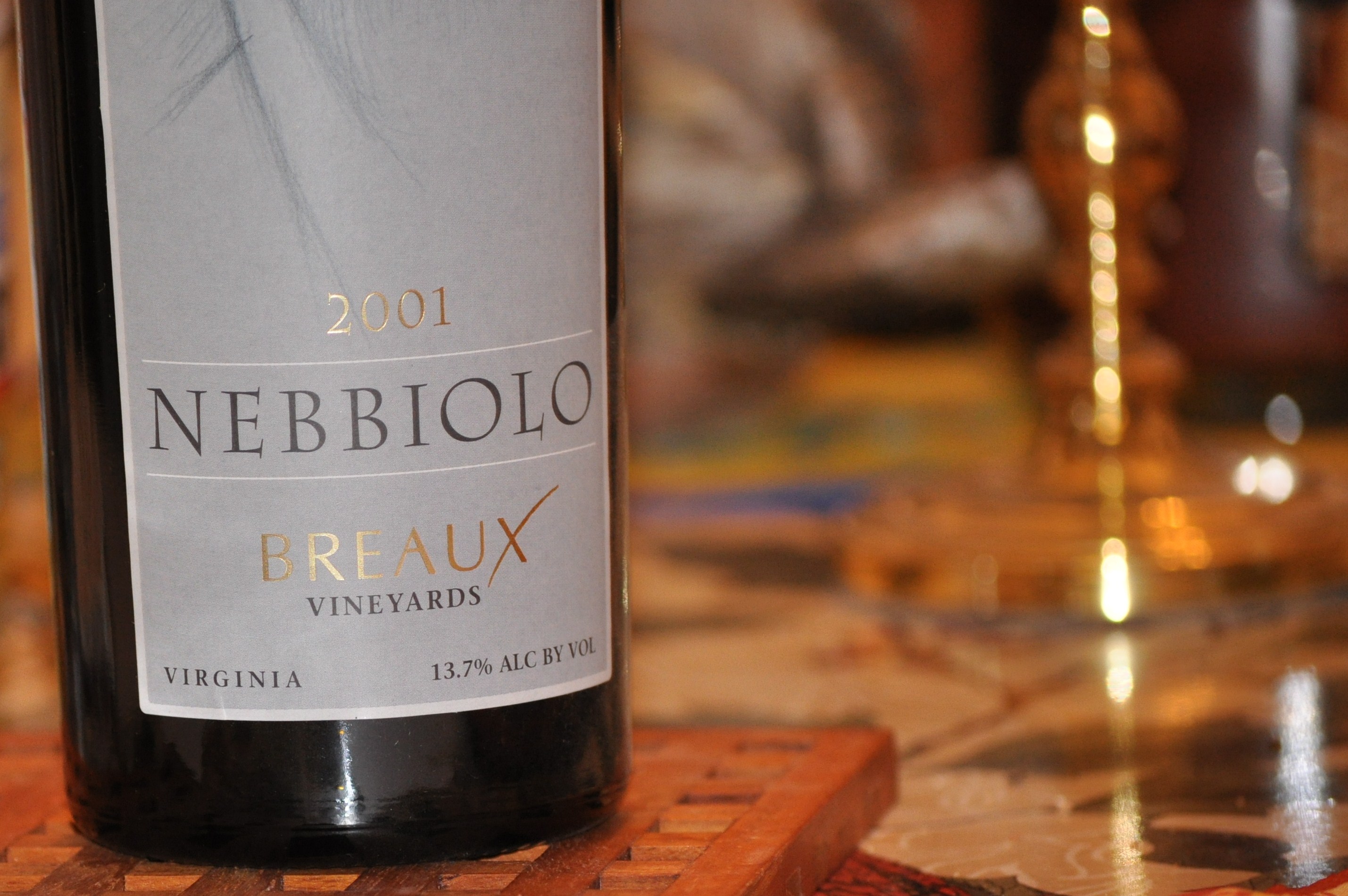 Big change from how I shopped, cooked and ate just a few years ago. As for dinner tonight. The wine was fully mature. Nebbiolo isn’t common in this area. Breaux is one of the few wineries that grows this grape in our area. But, now that Dave Collins left Breaux and is soon to open his own winery in Maryland, we hear that he is planting Nebbiolo in Washington County.