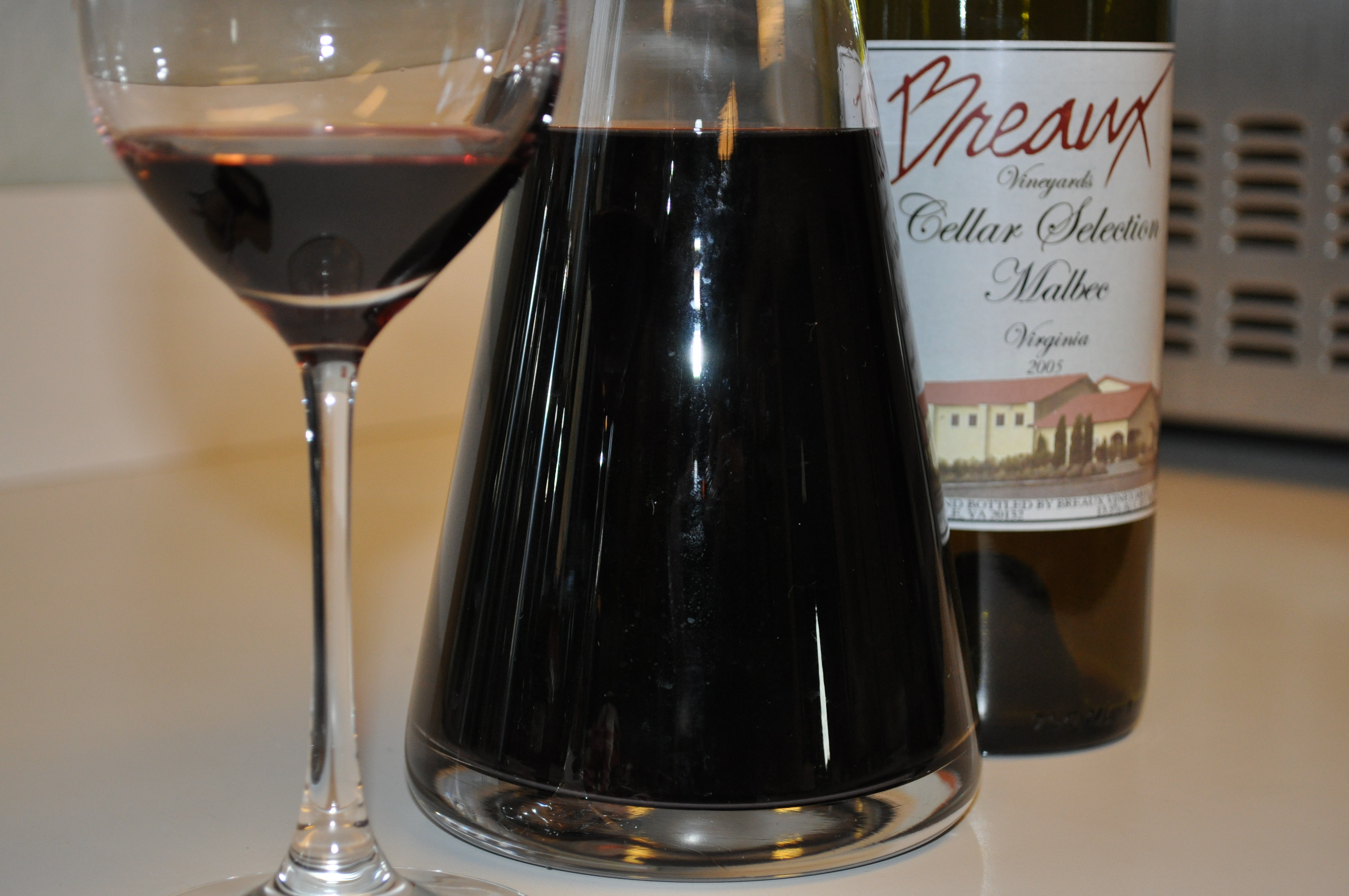 Malbec and venison are supposed to be a good match. And, they are. We decanted this 2005 Breaux Cellar Selection wine, to let it breathe. Really a delicious wine. A lighter version of Malbec as these were young vines.