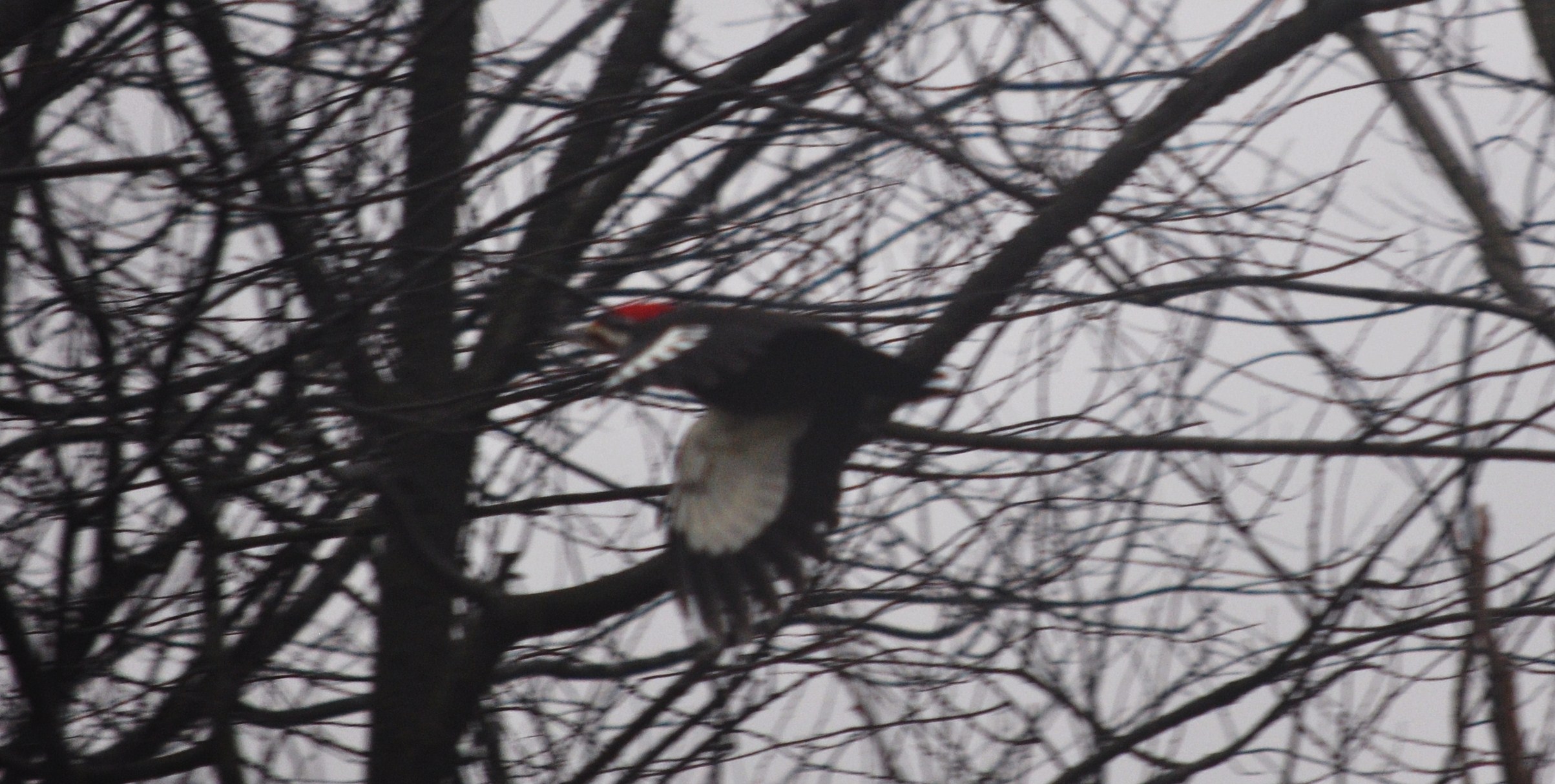 Not the best picture as he wouldn’t keep his head still, but I did get him as he was checking out all our dead trees on the property line. I also managed to catch him as he left. Twice.