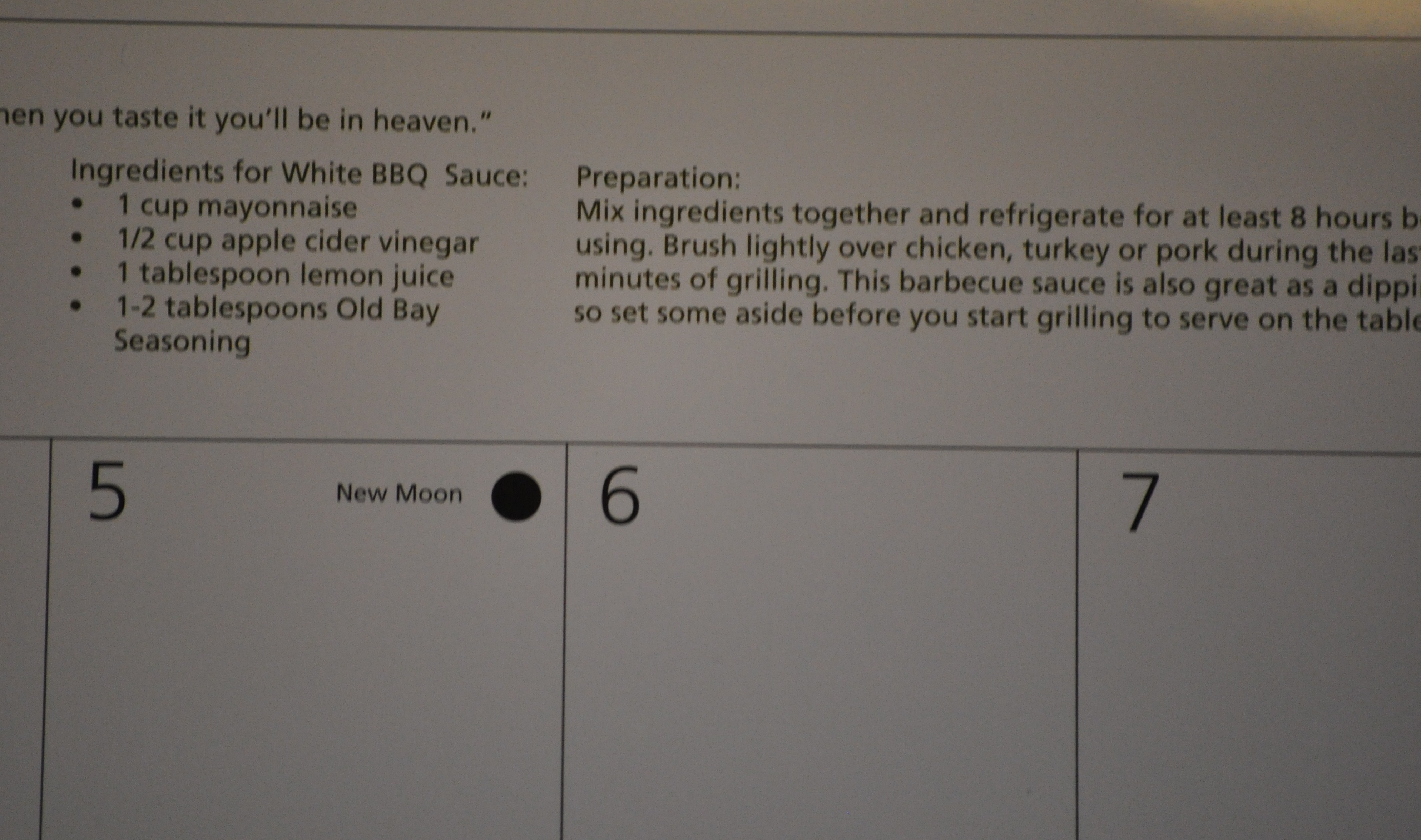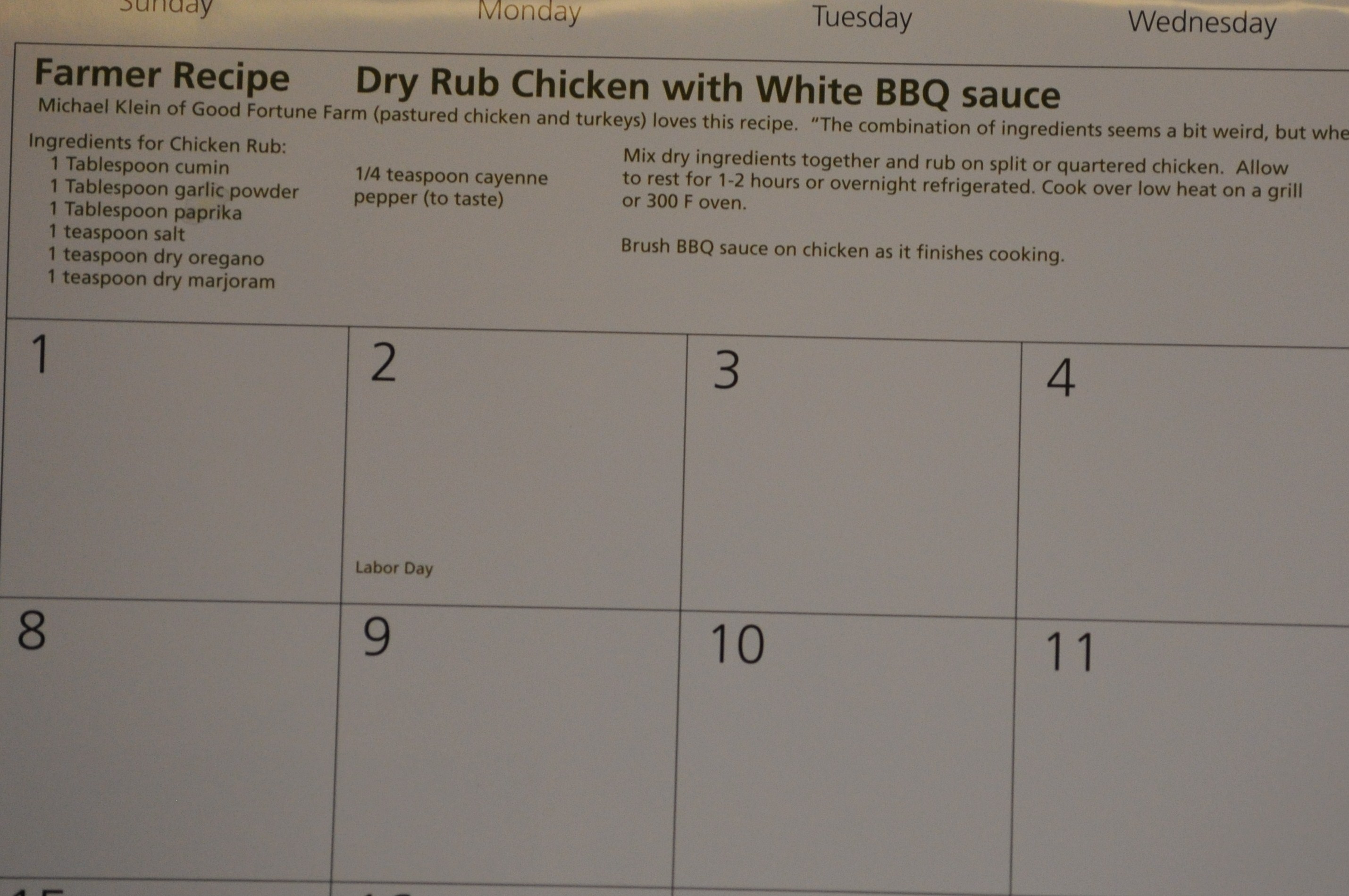 Tomorrow I will be posting my weekly Eat Local meal, and this will probably be it. There are other really good recipes on this calendar, that may show up on my table soon.
