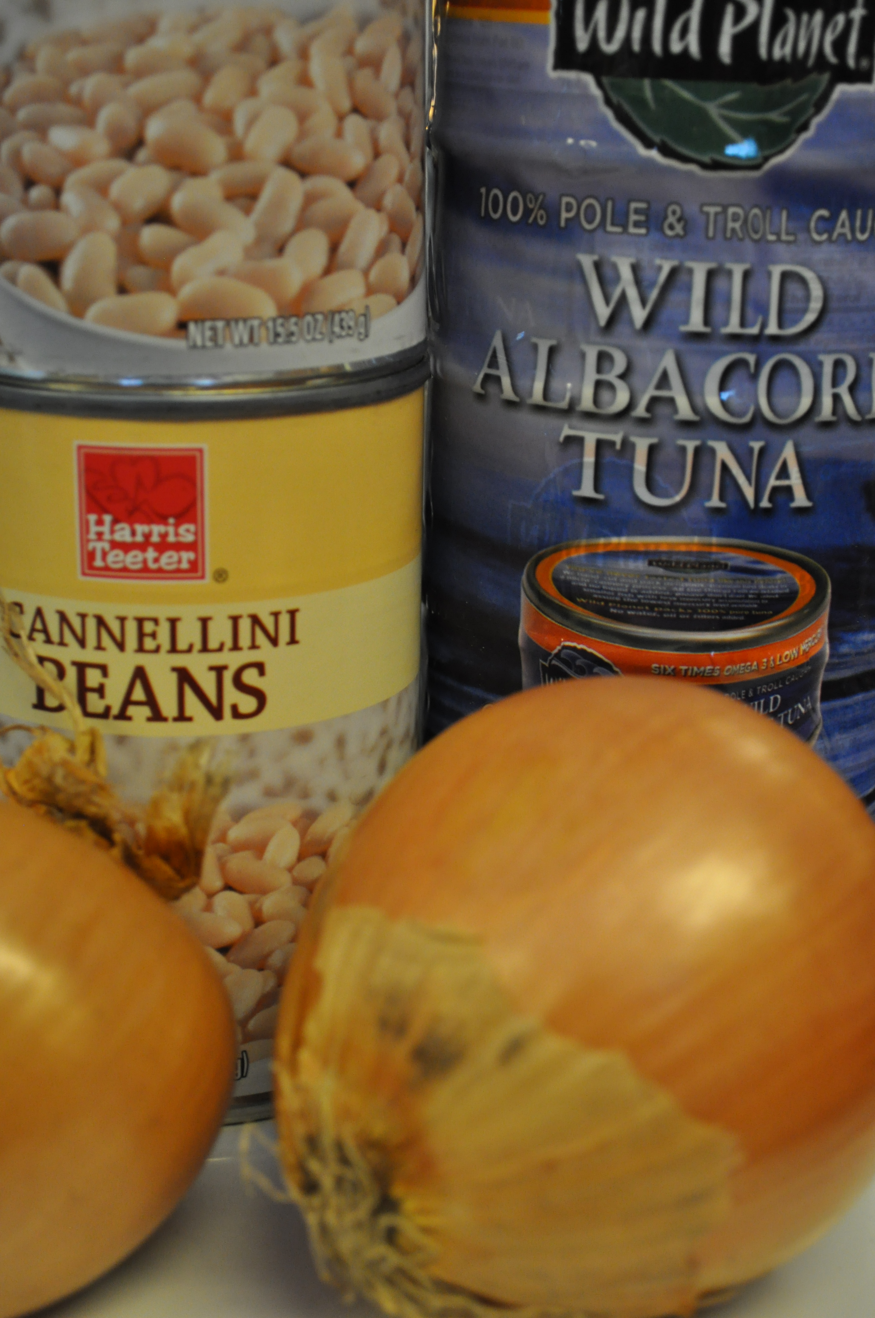 2. Food that is simple to make and eat. Like the ingredients for my tuna, onion, canellini bean salad. All it takes is a can of beans, a can of tuna, diced onion, olive oil, salt and pepper. Instant meal. Over greens if you have them.
