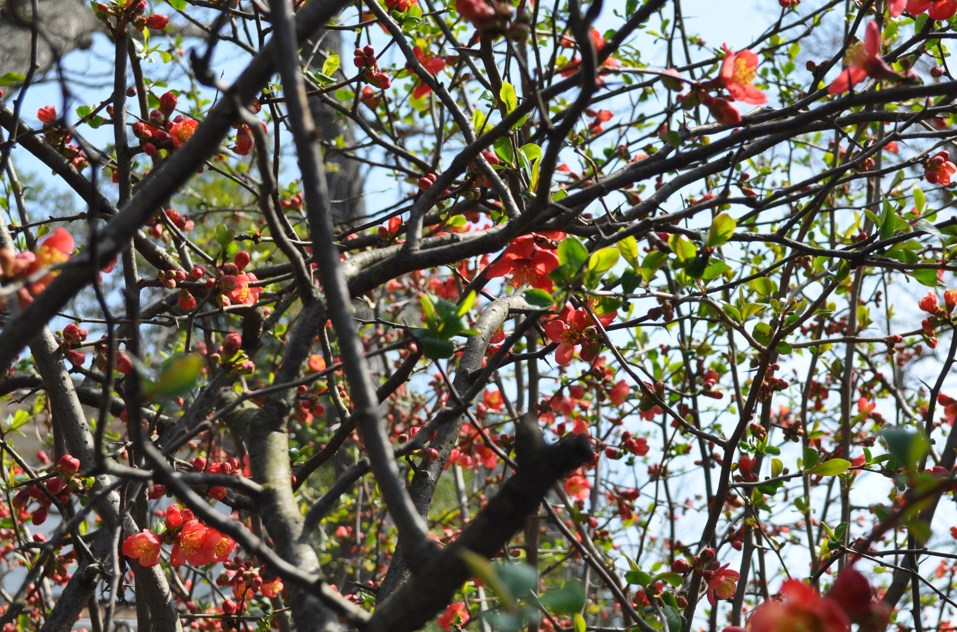 On one of these lovely days, you need to come out and walk the grounds, feed the goats some twigs or leaves, ogle the chickens and guess the flowering shrub none of us knew.