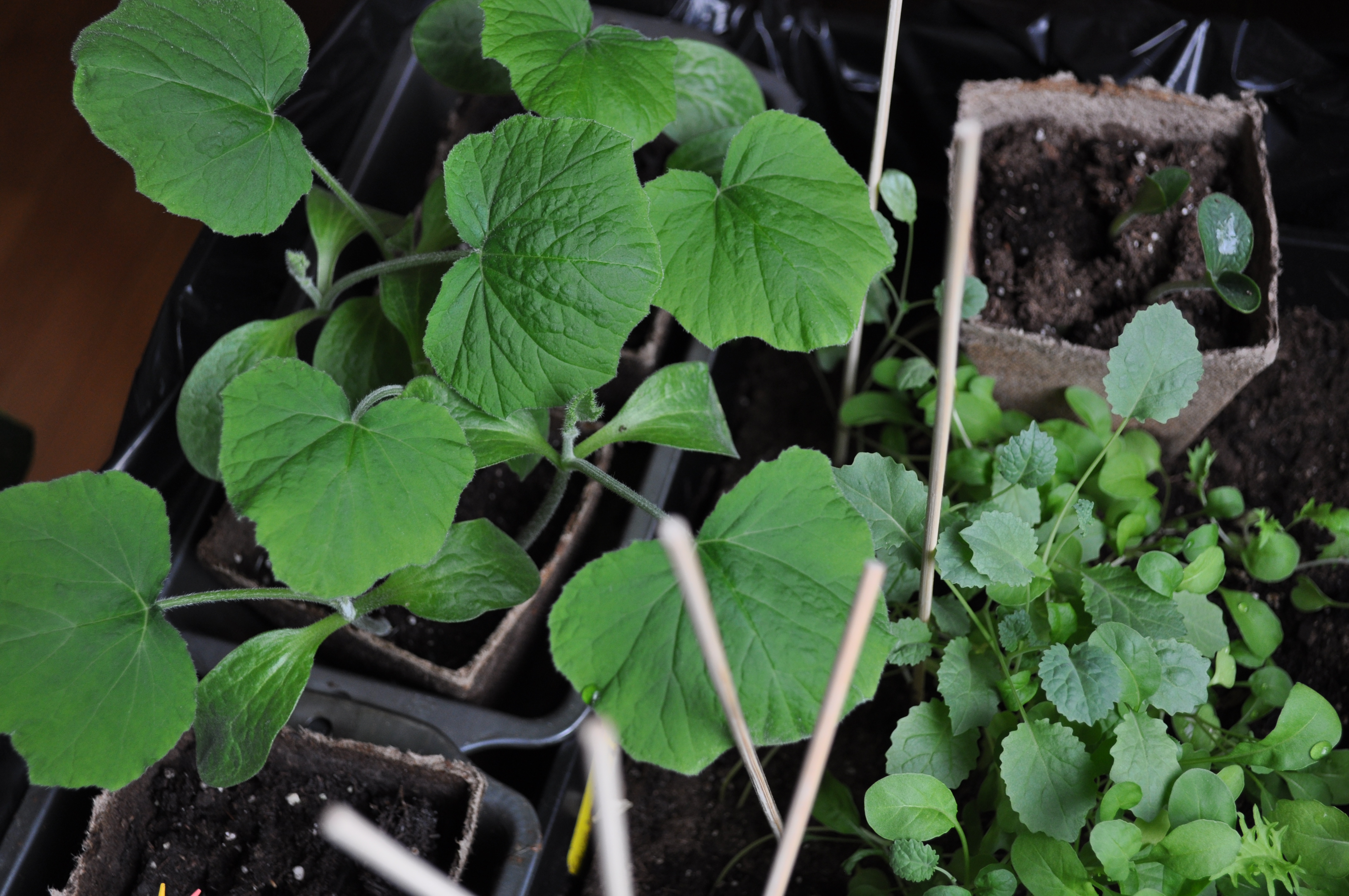 Thelma Sanders squash, including two that took weeks to germinate (slow metabolism maybe?). There are nine seedlings now. I am giving a few to friends to grow, as nine squash plants would take over my garden.