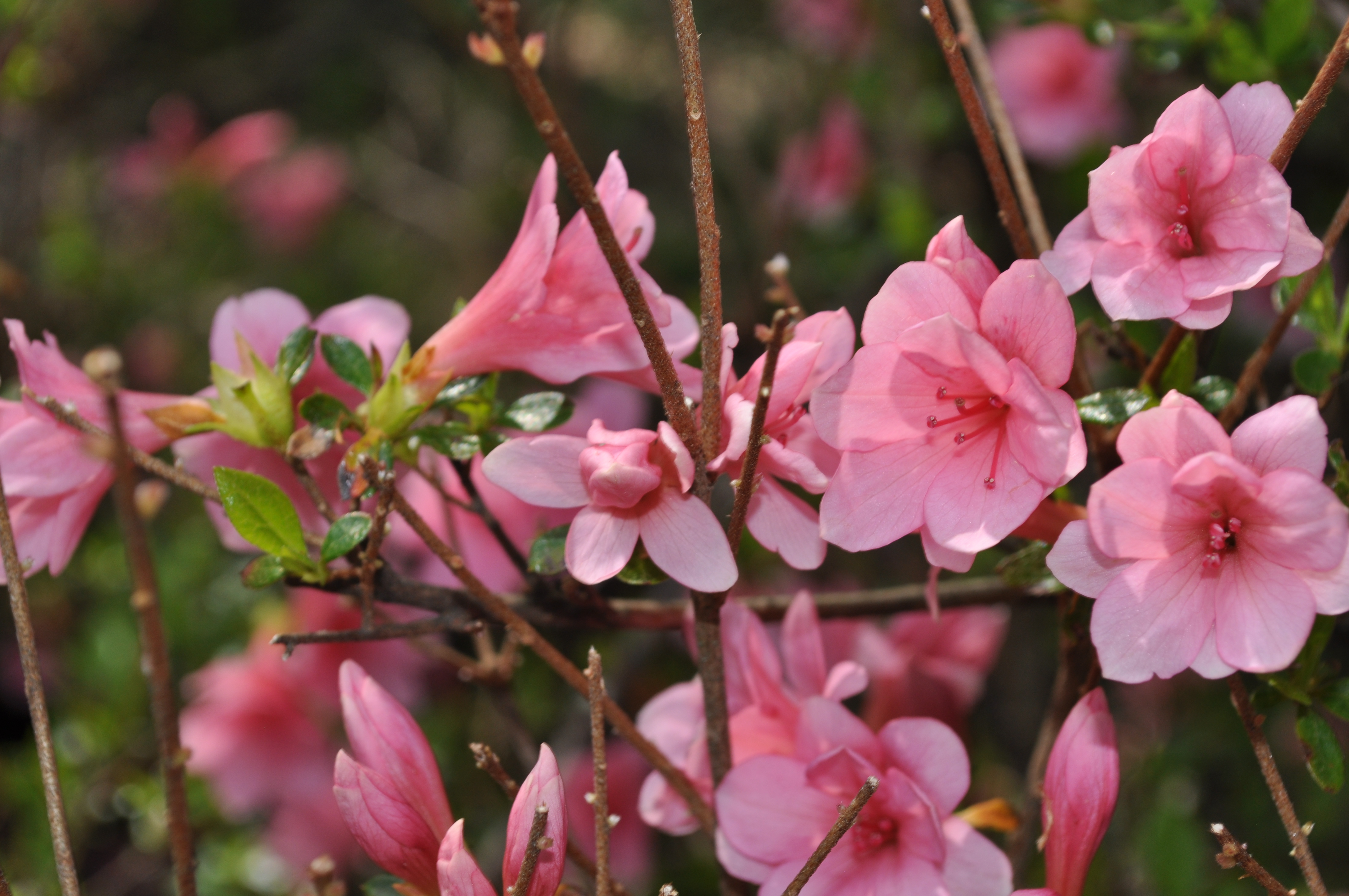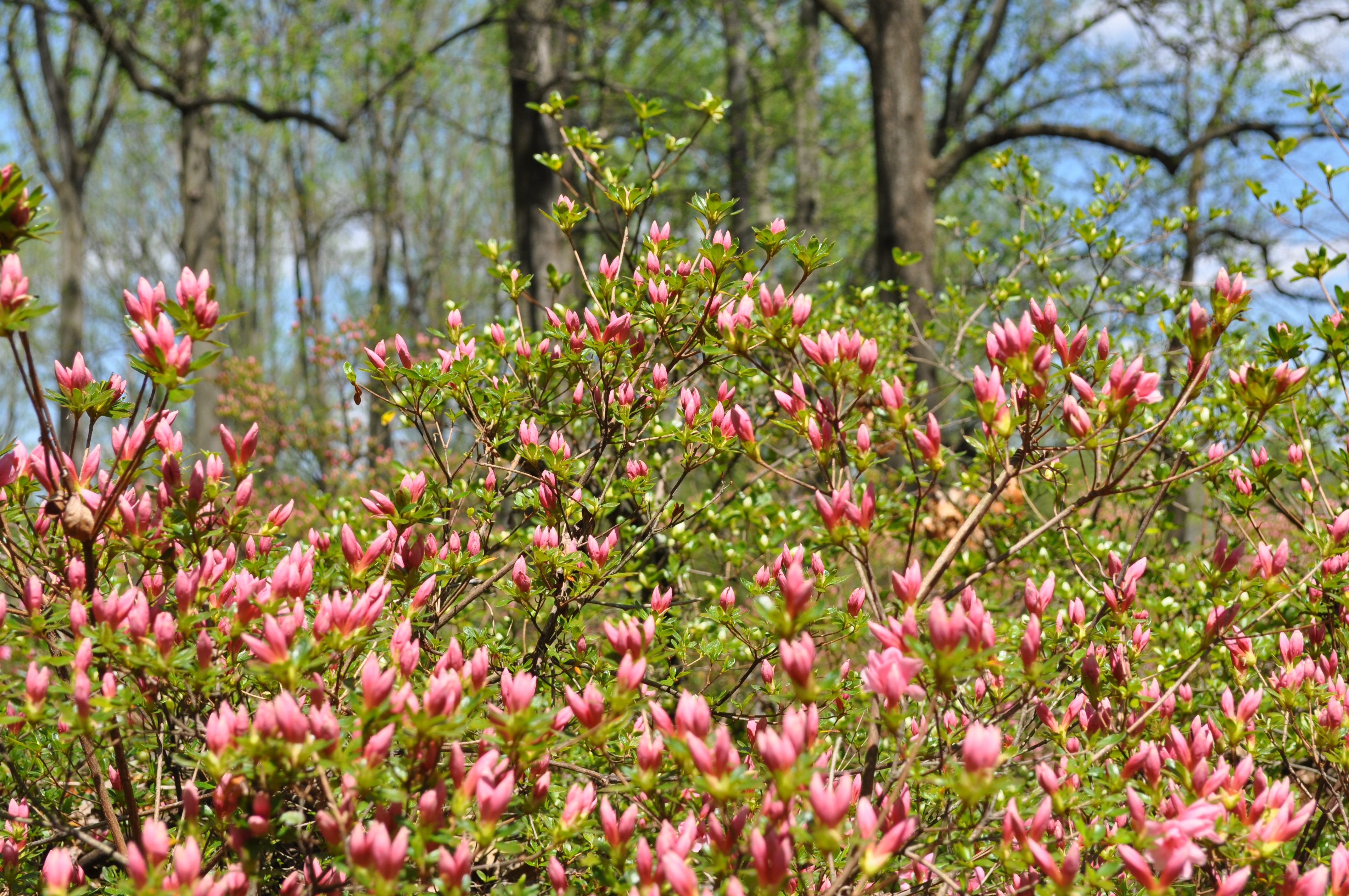 These early pink blossoms were scattered around the property but when you walked the trails it was mostly just greening up. Beautiful sunny day. Many people out. Give them a week and they will start popping.