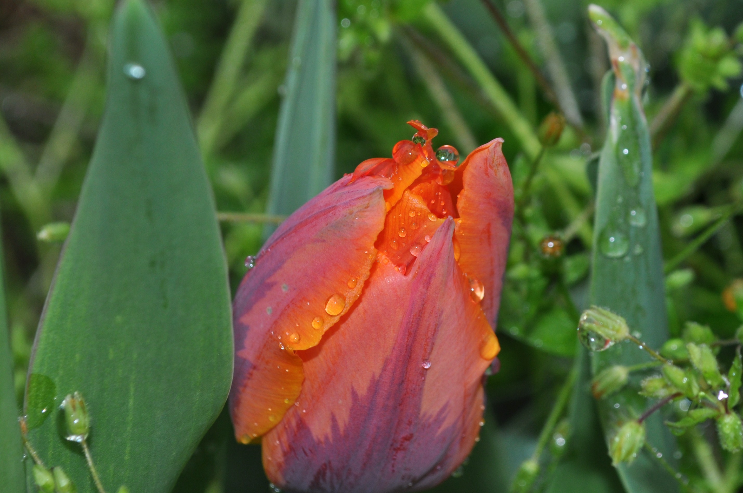 Today’s rain was welcome as it is nourishing my garlic, my herbs, my greens and these wild plants. Oh, and the tulips. I am lucky that the animals ignore them. I guess having a yard with clover, dandelions, chick weed and whatever else out there keeps them happy and away from my flowers. As I have said often, I am loving spring time.\