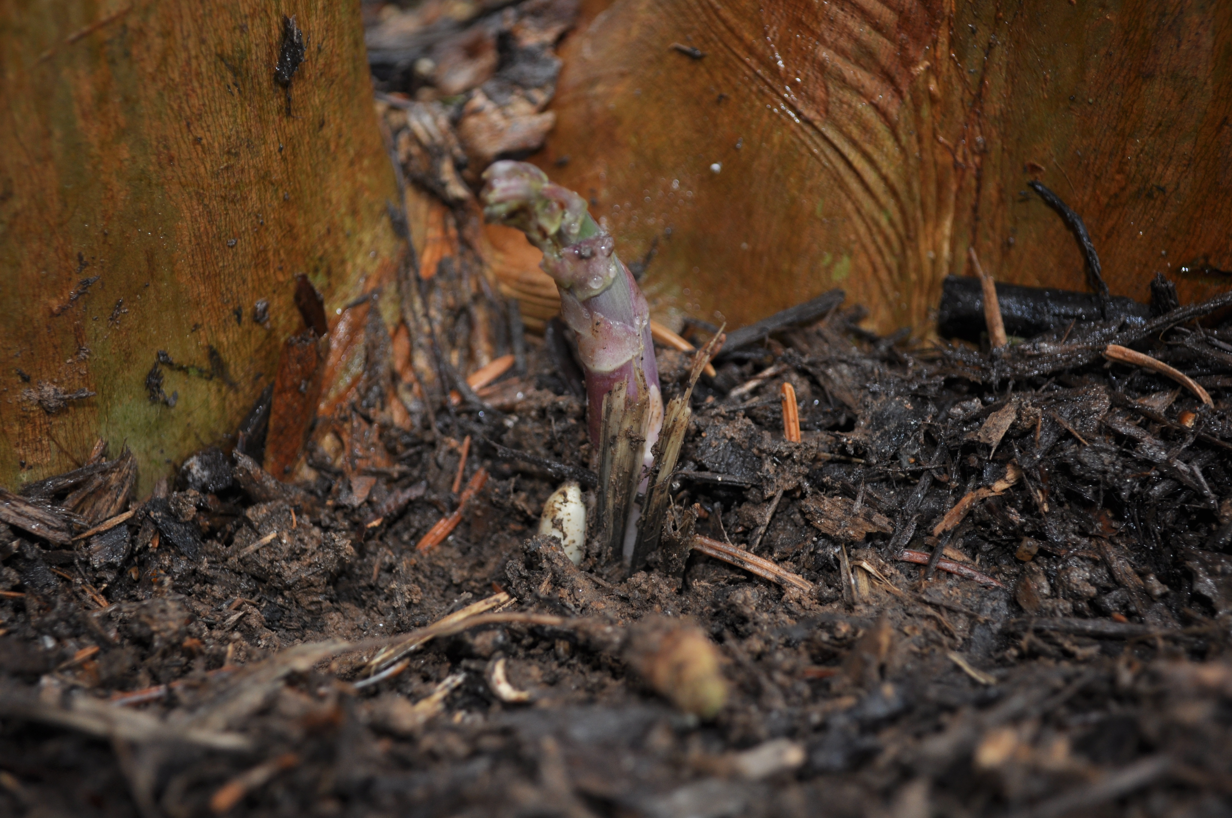 I wrote about them last year, when I got at least 40 or so spears of asparagus that keep coming up under my crepe myrtle. Saturday there was nothing there. Today. I found four spears in various lengths.