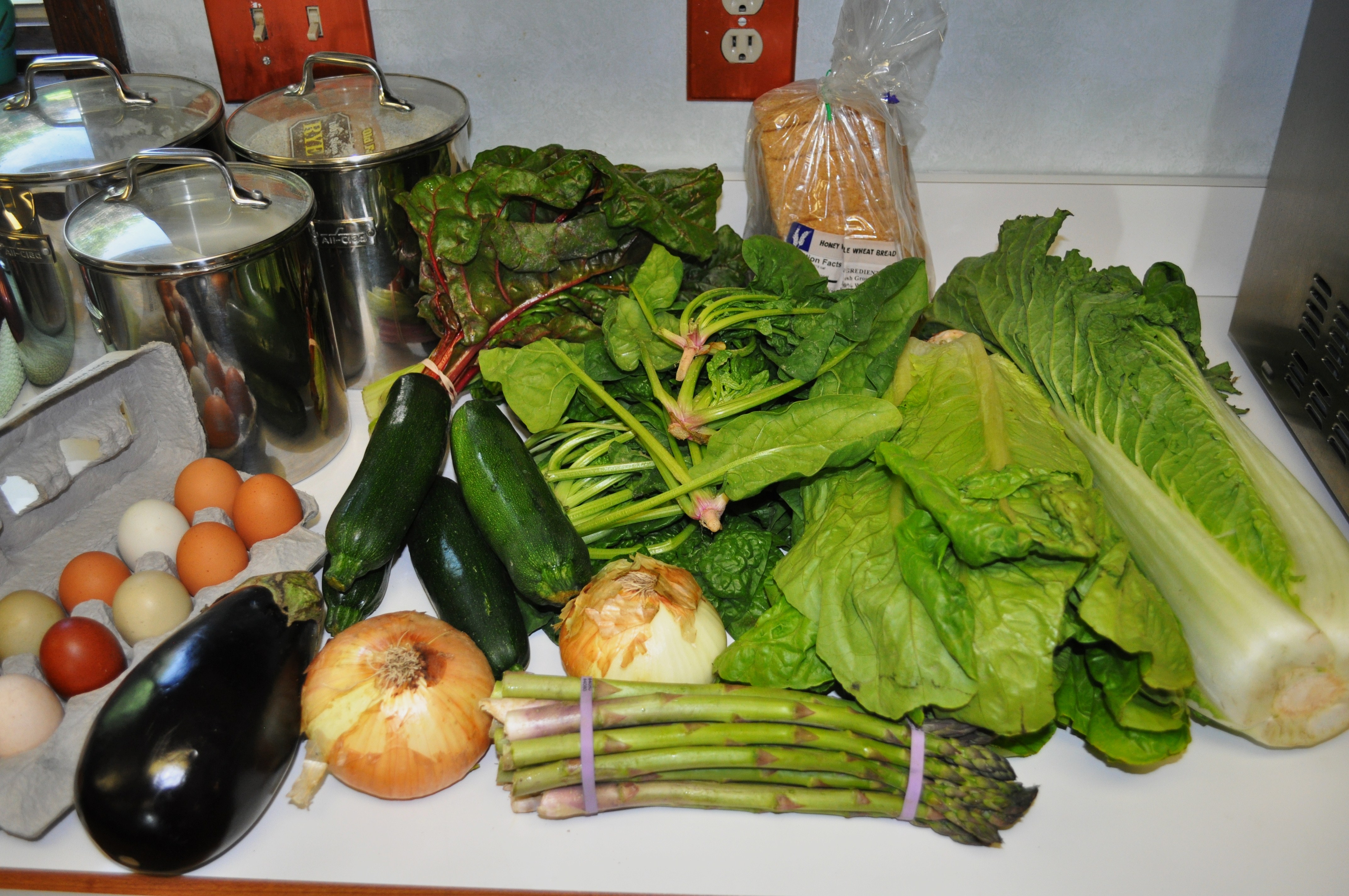 There is ratatouille in my future. I have some tomatoes in the freezer. We got onions, eggplant and zucchini. Sounds like the perfect fit.