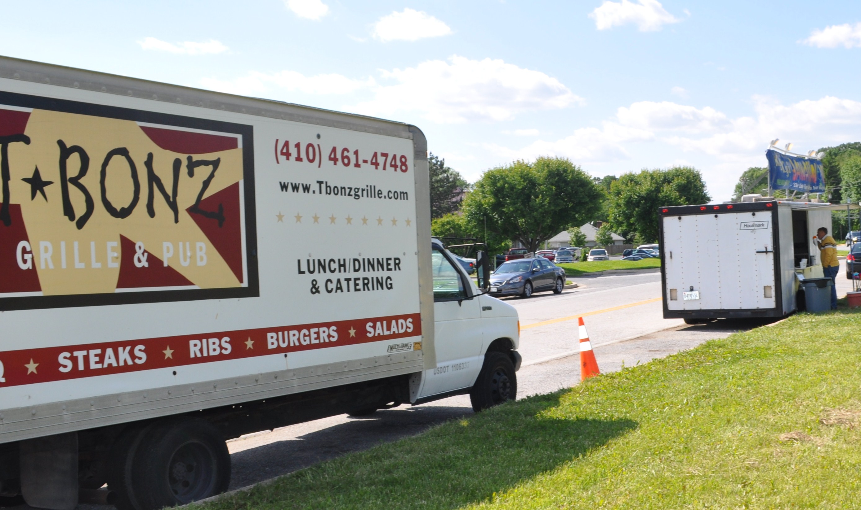 But, missing the turn at New Cut Road, we went up to the intersection of Waterloo Road and Montgomery Road to turn around. There, by the TBonz truck was a trailer selling shave ice.
