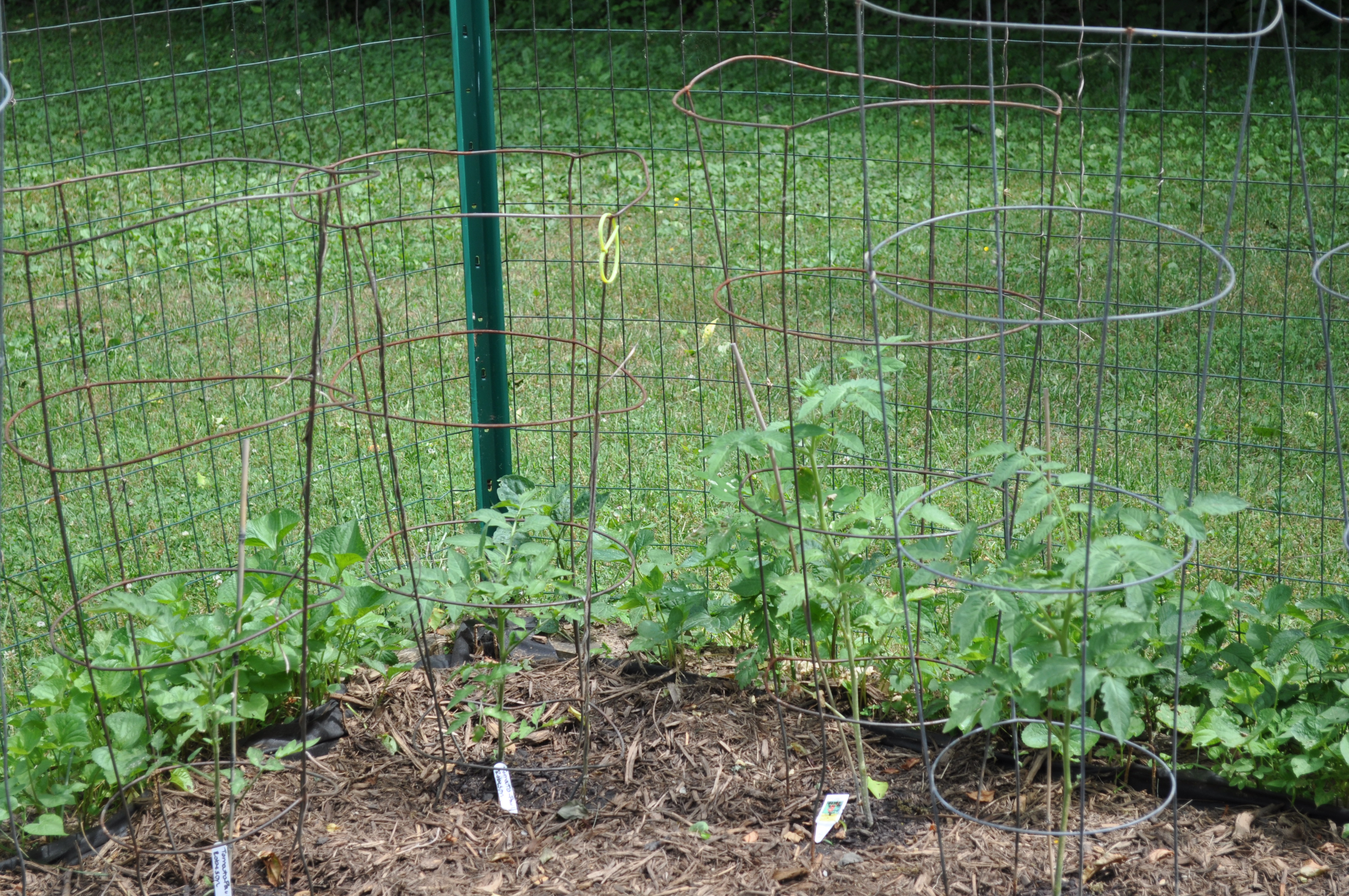 Finally, all 48 tomato plants are surviving and thriving. Crossing my fingers. I haven’t lost any of them, even those that were puny and looked susceptible after the cold spell. I may truly be putting out a roadside stand to sell them if they all stay healthy.
