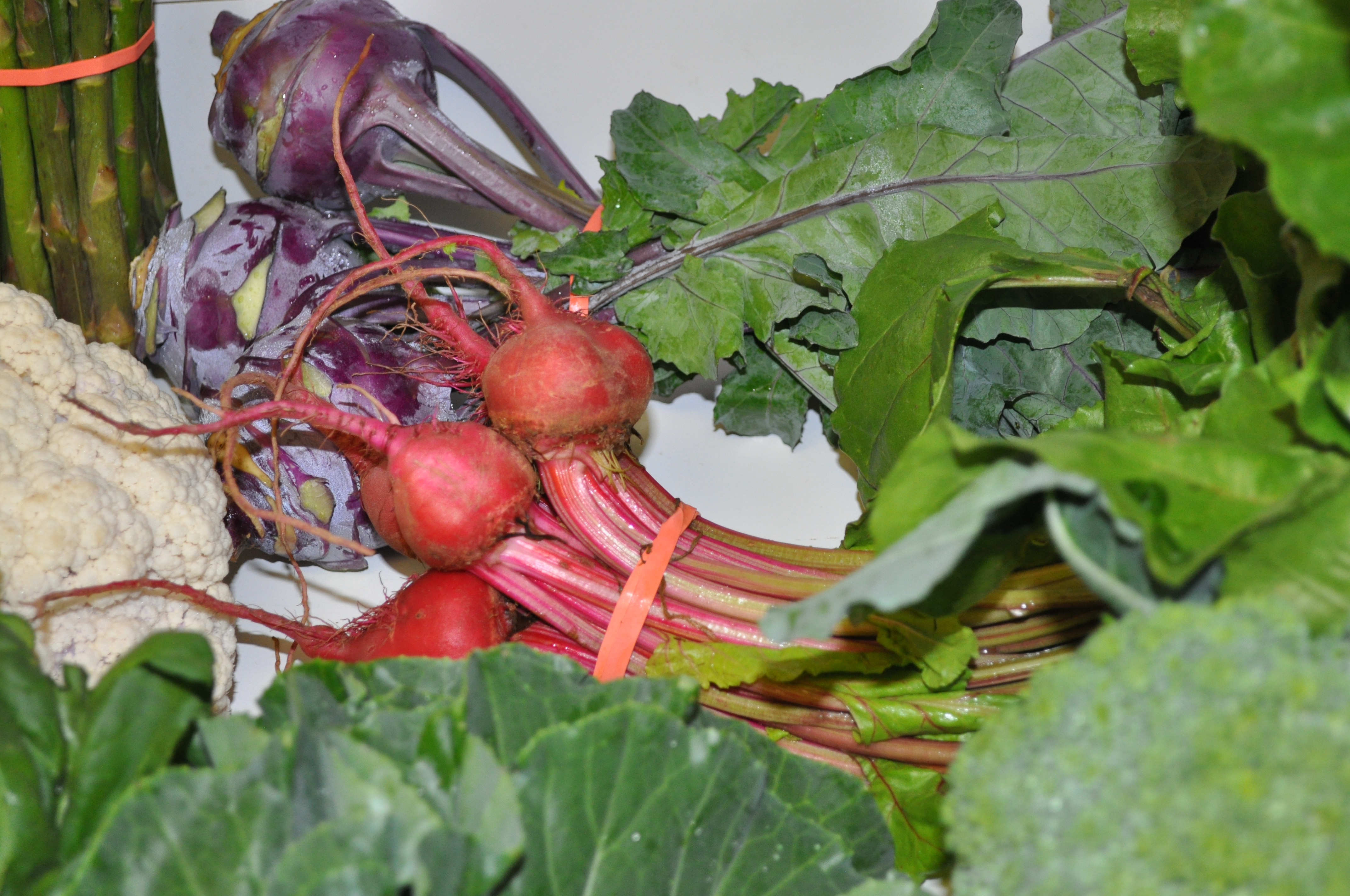 My husband really loves getting those veggies that are perfect in salads. And, we are really thrilled to see the beets, the kohlrabi and the English peas. Oh, and asparagus for the third time. We can never have too much asparagus.