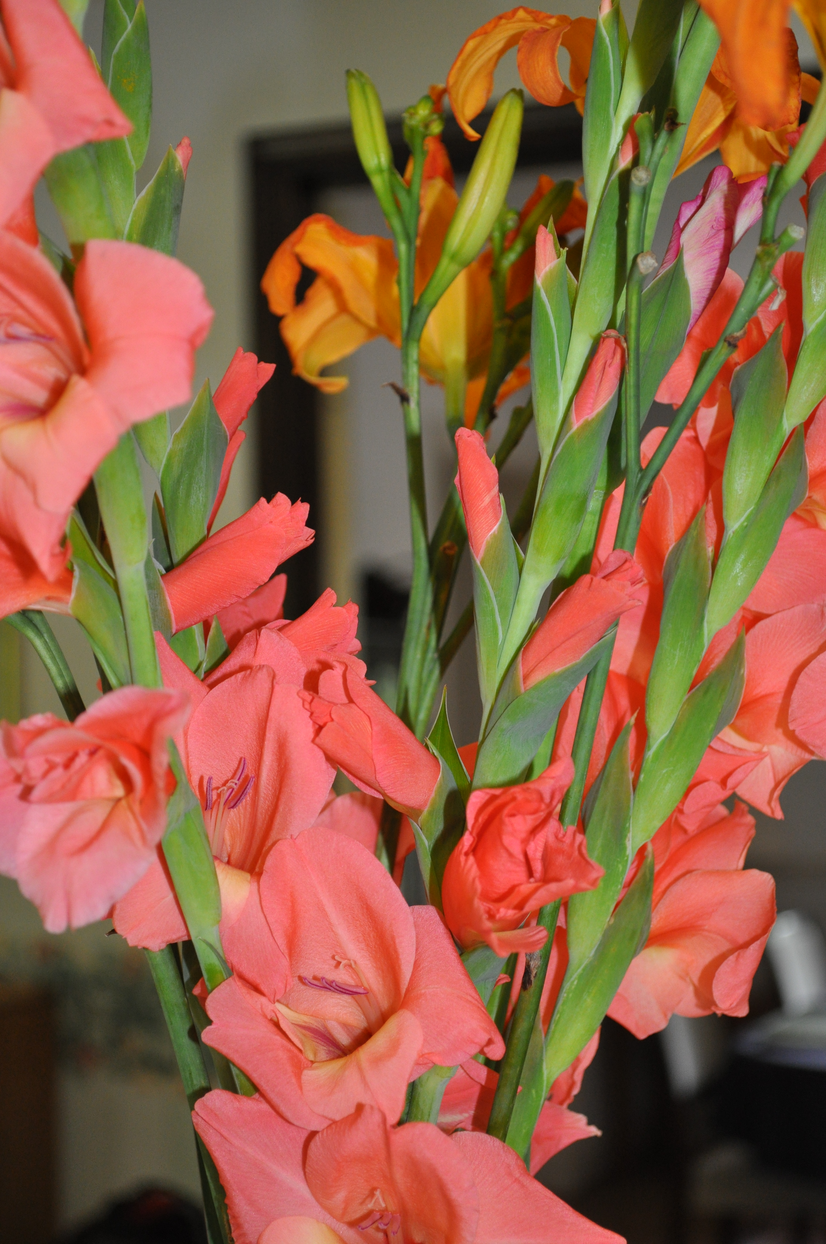 making my flowers explode in blooming. There are literally dozens of stalks on the gladiolus plants in the corner of the yard. I cut two or three every morning to keep them on the counter or the dining room table. Crossing my fingers they will still be blooming the week of the county fair. I got a second place ribbon for them last year.