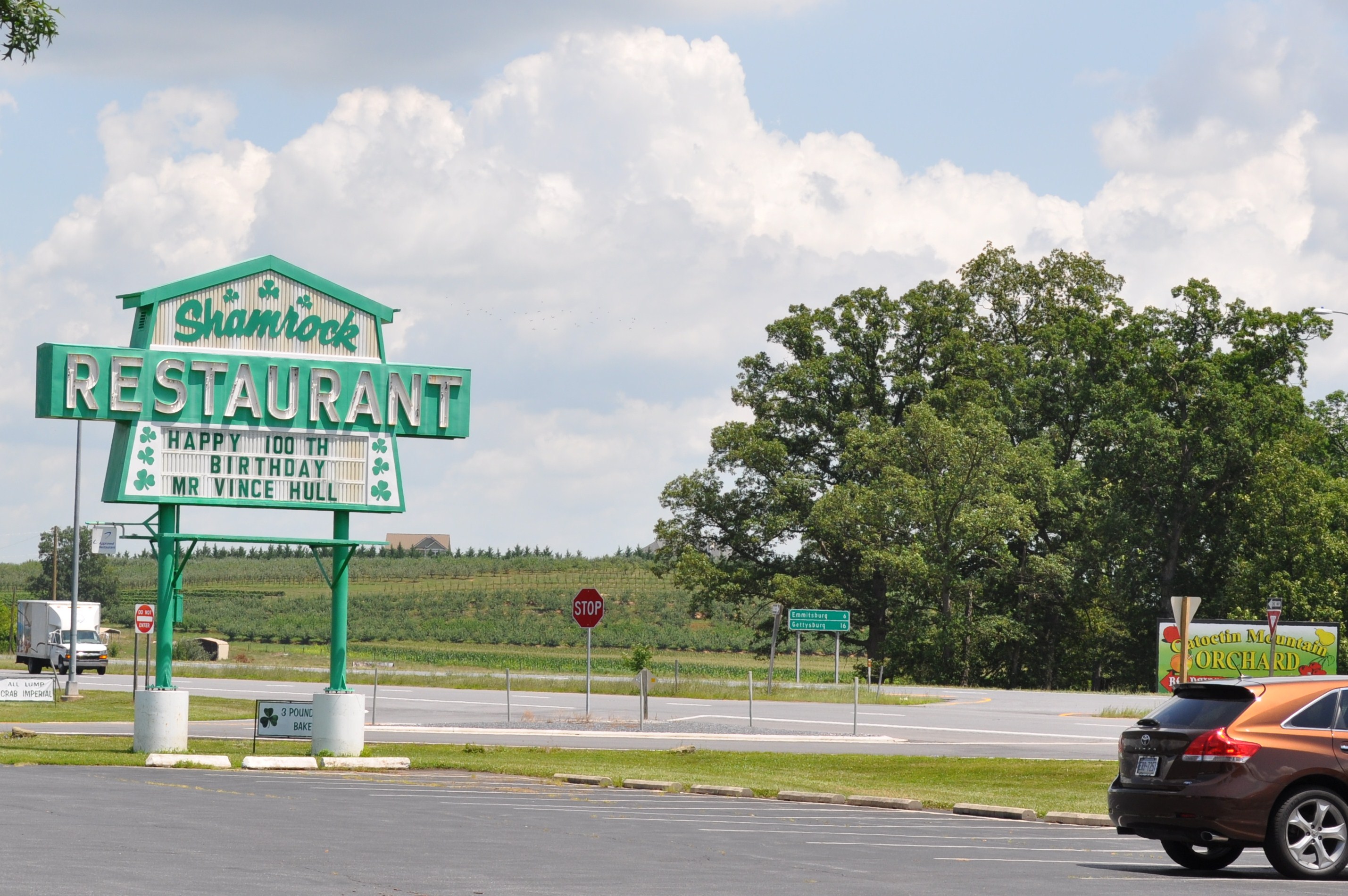 We were making a loop. Gettysburg. Thurmont. Frederick. And home. After the outlets, off to stop at Catoctin Mountain Orchards for some fruit. We did decide to indulge in lunch at one of those long time restaurants in that part of Frederick County.