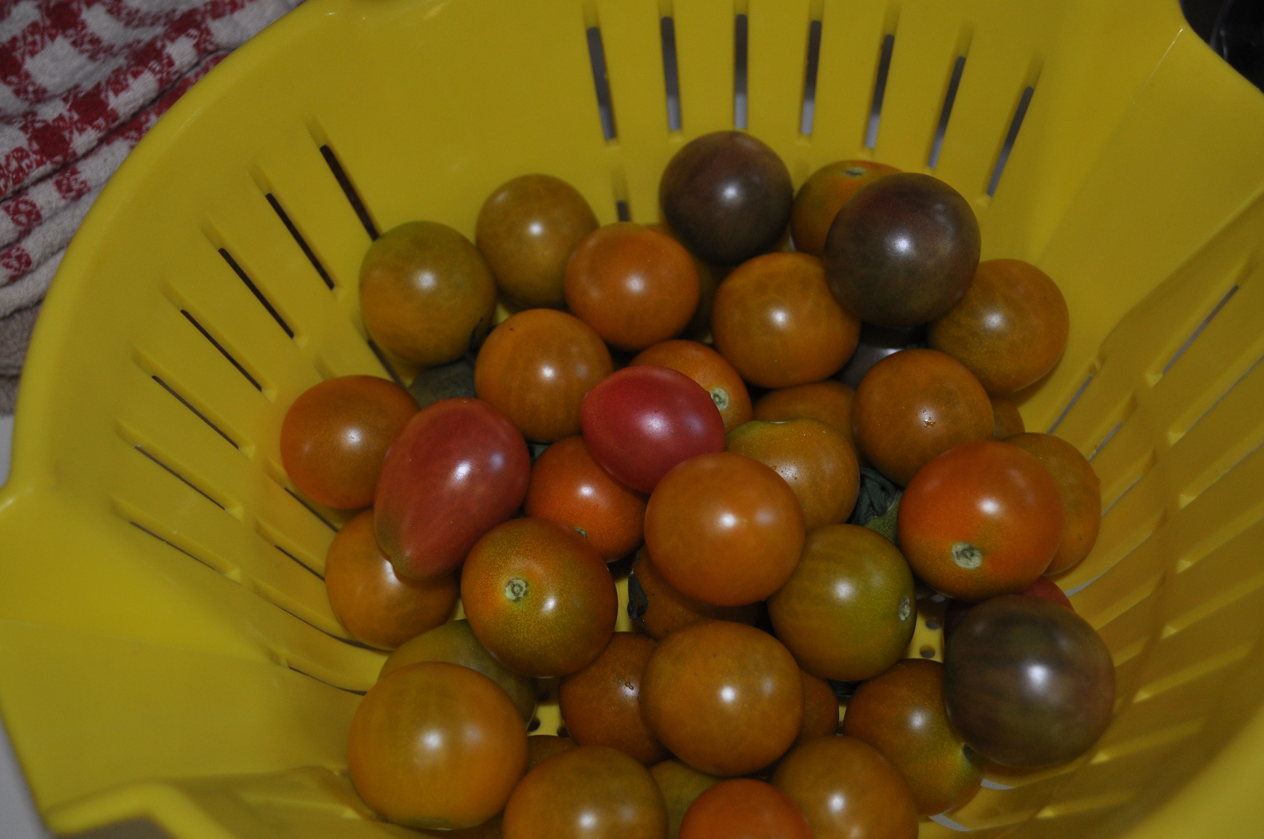 My husband picked a bag of tomatoes in one of the high tunnels while I talked with the wife of one of the farmers.