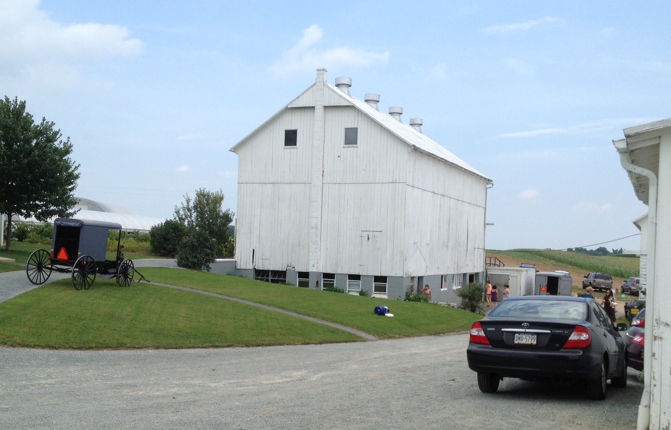Most of us arrived by car to picnic in the barn. The barn was being used, just in case of rain. Some of us arrived by buggy.