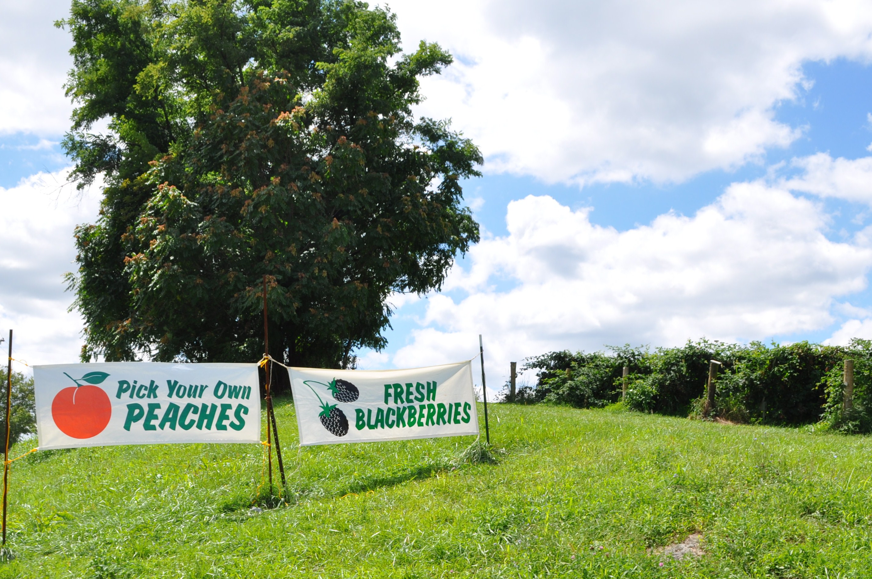 Head on out to Larriland. The peaches and blackberries are down the road from the farm entrance (stay on Rte. 94 south) and a right turn into the picking areas.