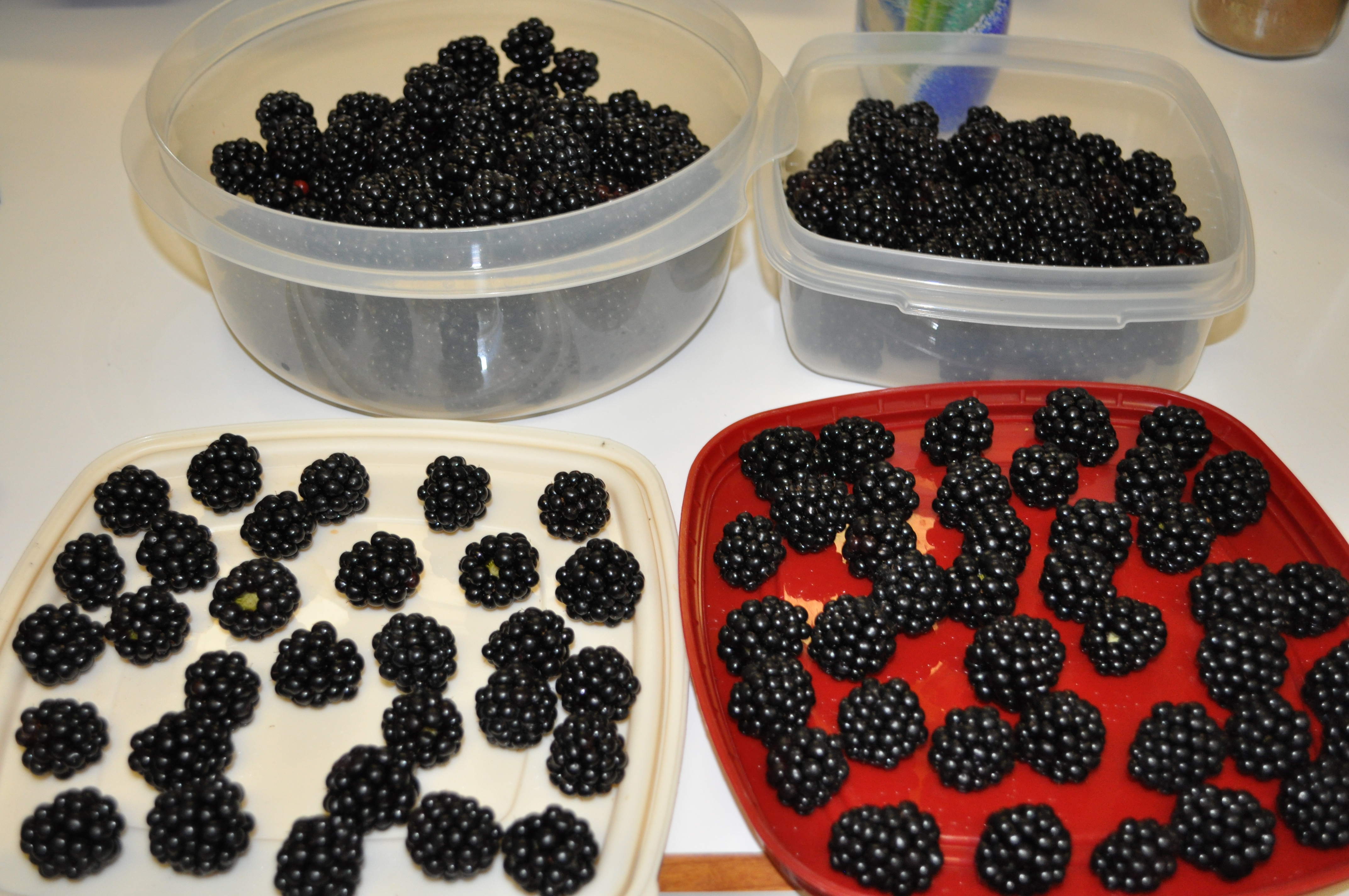 1. My brother was there Saturday to pick blackberries, and gave me his excess. I made a peach & blackberry cobbler (Baugher’s peaches) with pecans instead of oatmeal in the topping. Those blackberries are really sweet!
