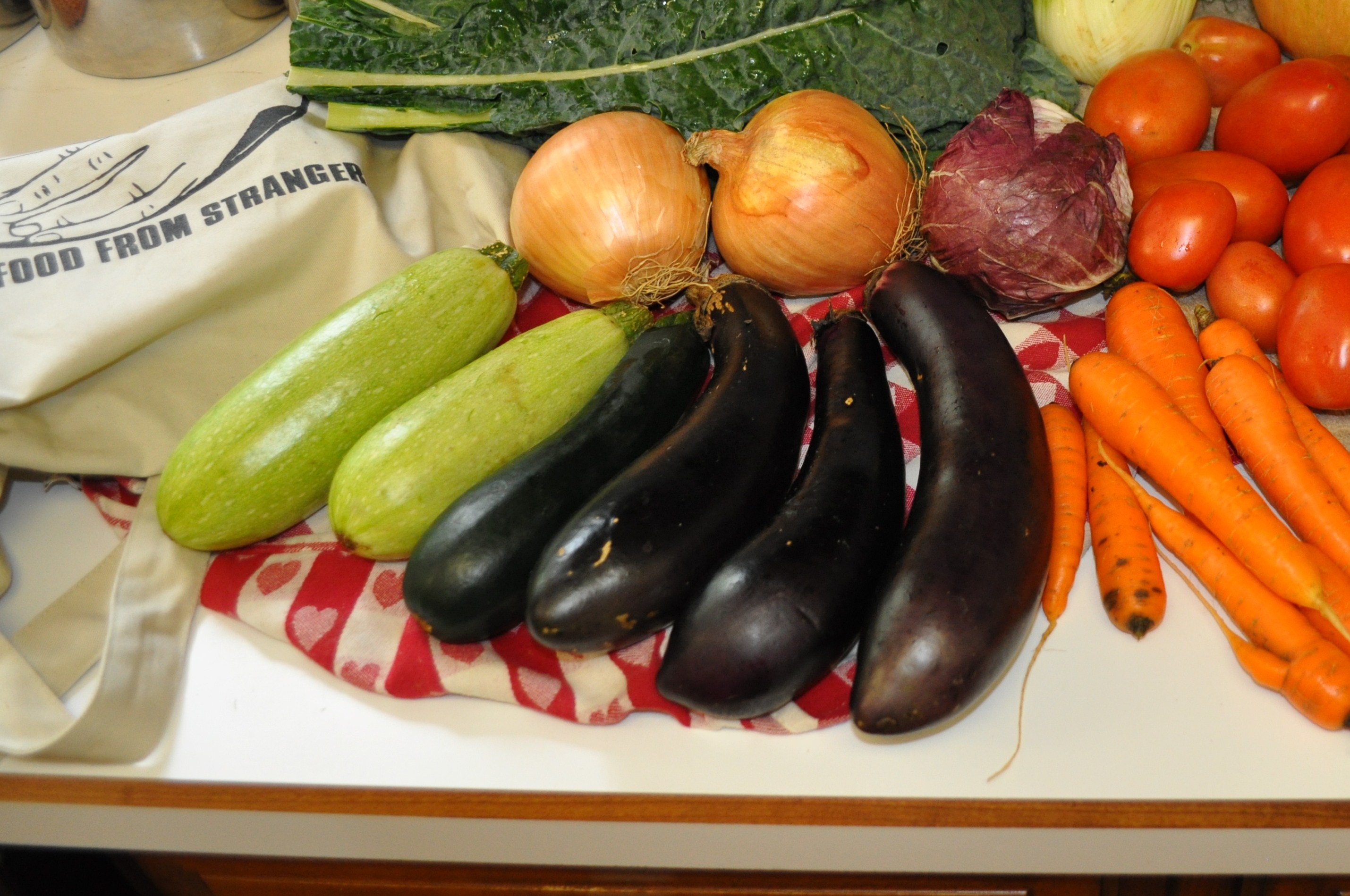 As for the eggplant and the two types of zucchini, I am sort of ratatouille’d out, so there may be chocolate zucchini bread, or zucchini fries. The eggplant will probably end up in a new batch of ajvar if I pick up a few red peppers.