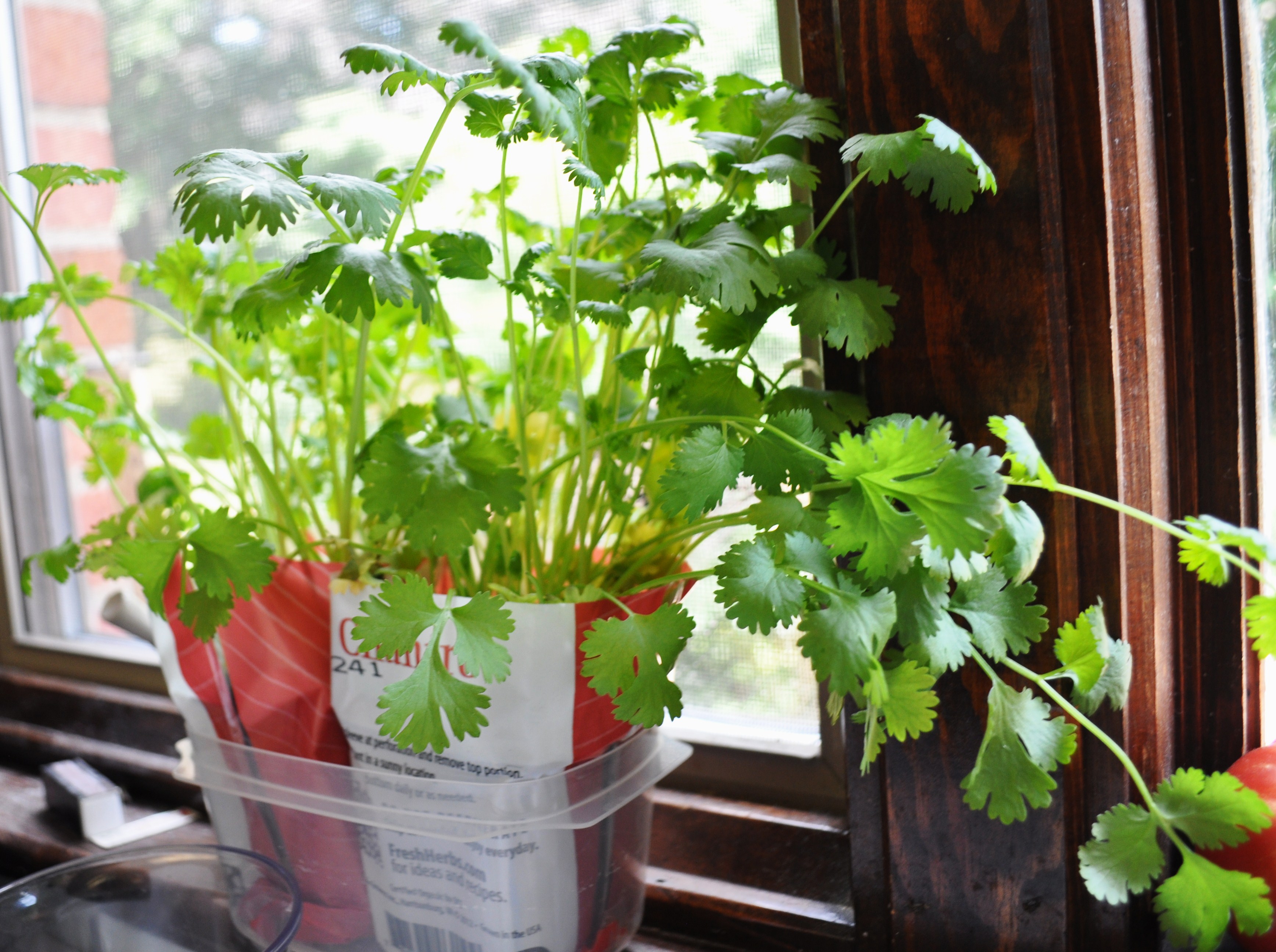 As for the reason I swapped the cilantro, I had just bought two pots of it at Harris Teeter, to keep on the windowsill. They are from Shenandoah Farms in VA and are meant to keep supplying you with herbs for as long as you remember to water them. I needed it for that bitter melon soup.