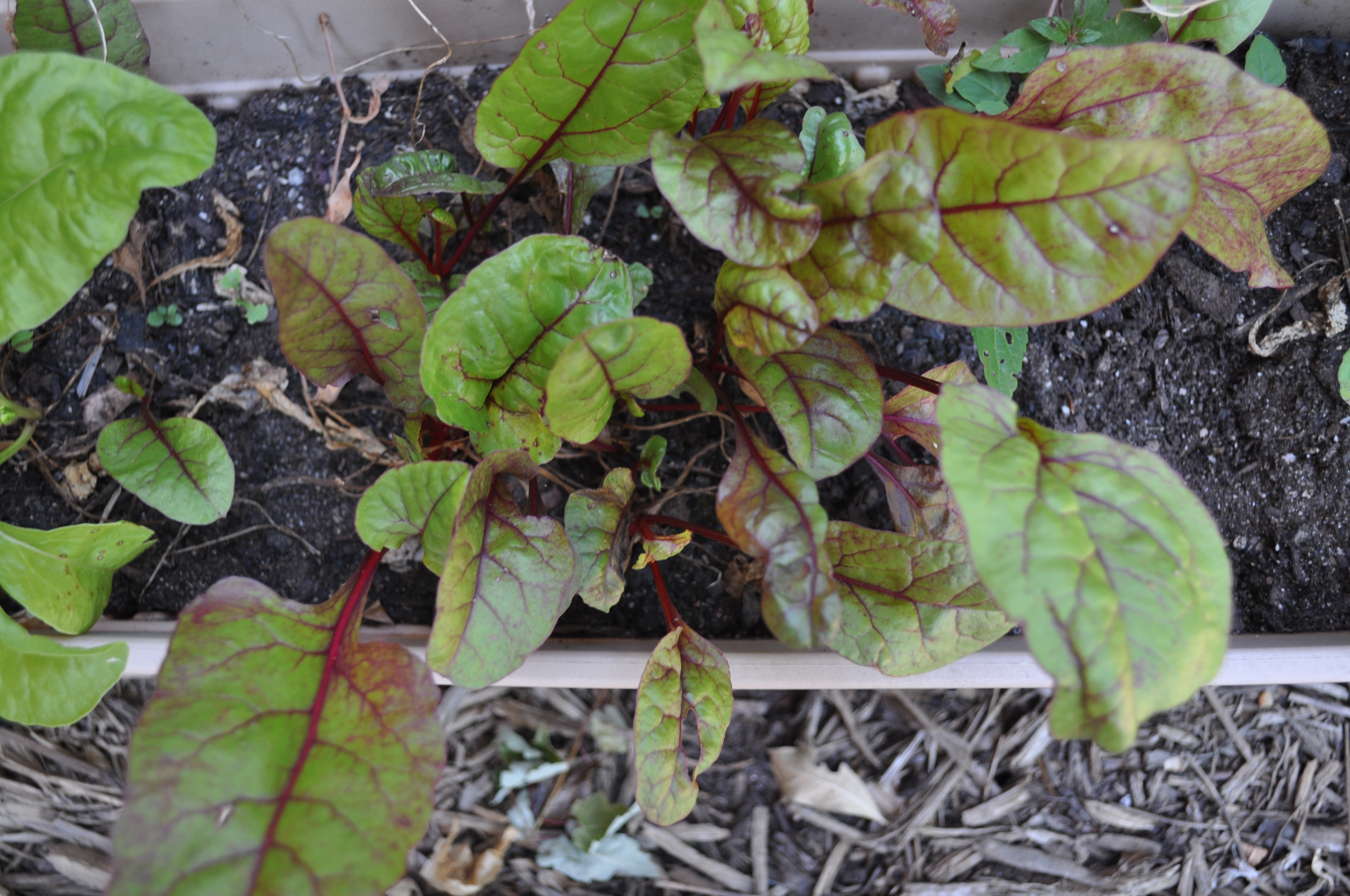 The fall greens have started to spread in their boxes. I have chard and arugula out there.