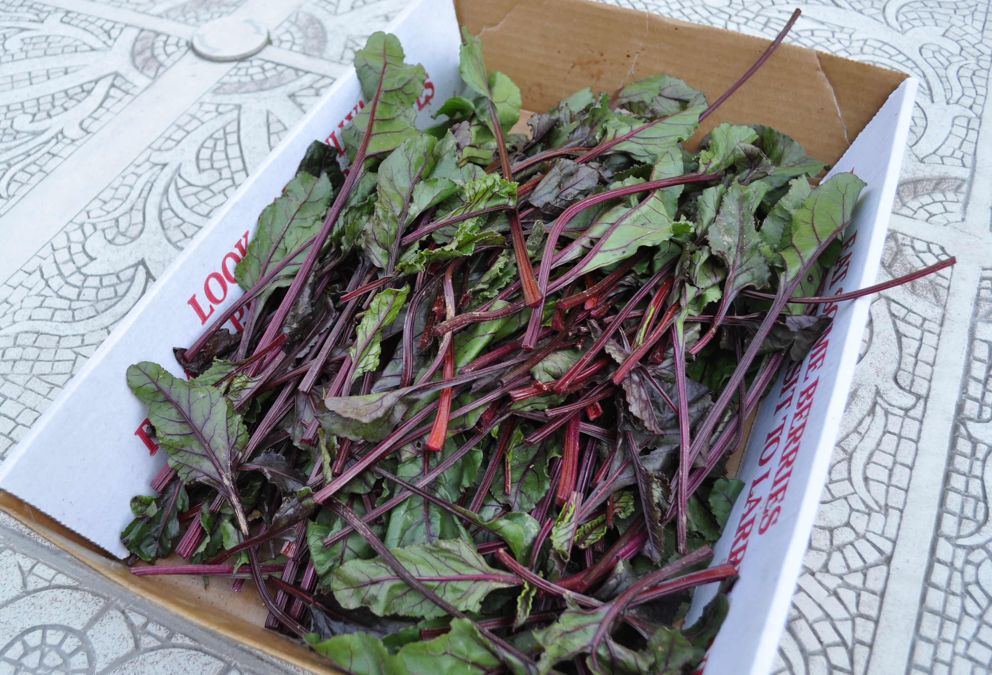 I ended up with a couple of pounds of beet greens. Some frozen. Some cleaned for salads, and some wrapped up to use in borscht, which I want to make next week.