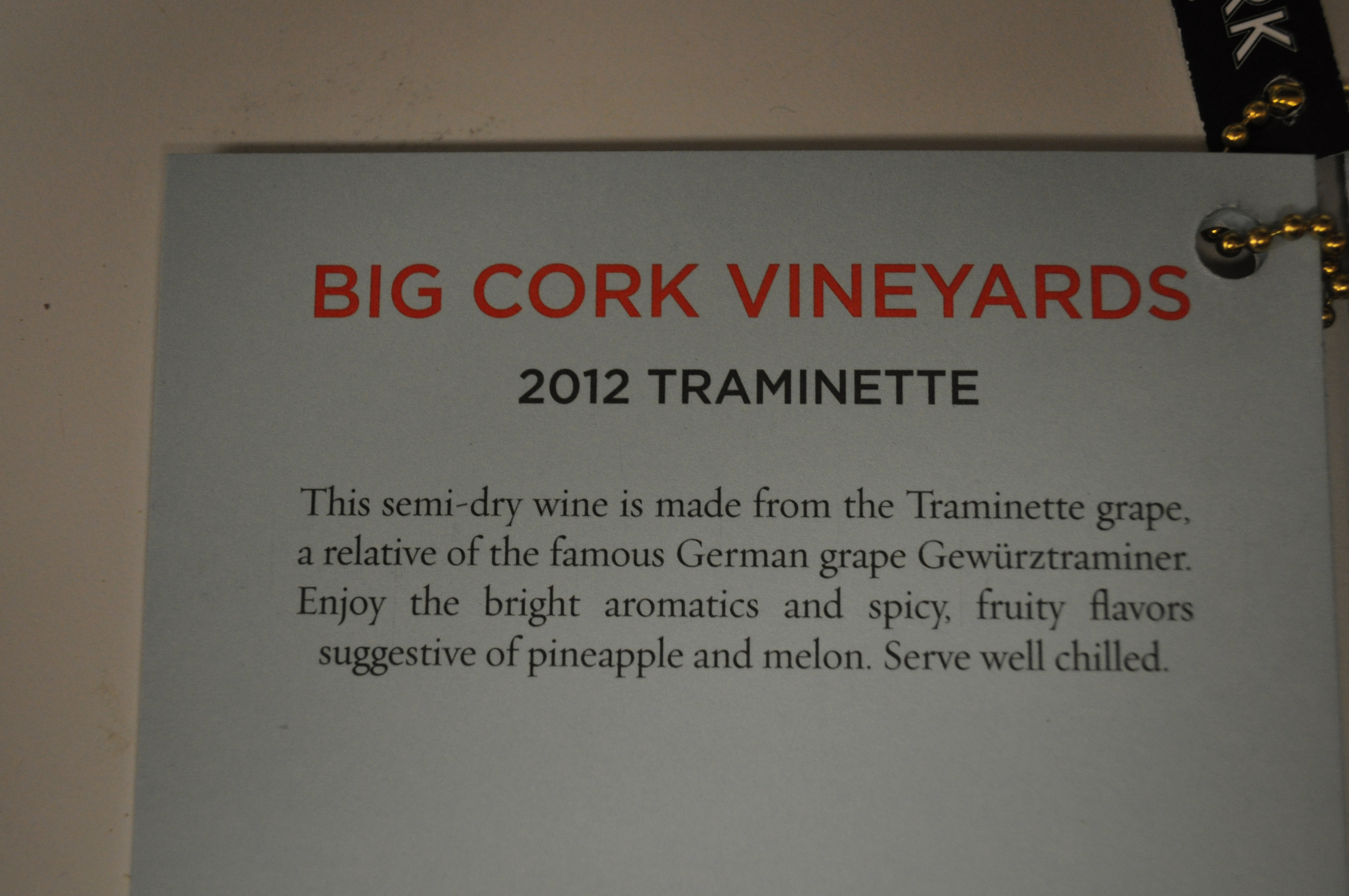 Big Cork. With two wines in the running. Traminette and Vidal. Although I think the Traminette is the best turkey wine.