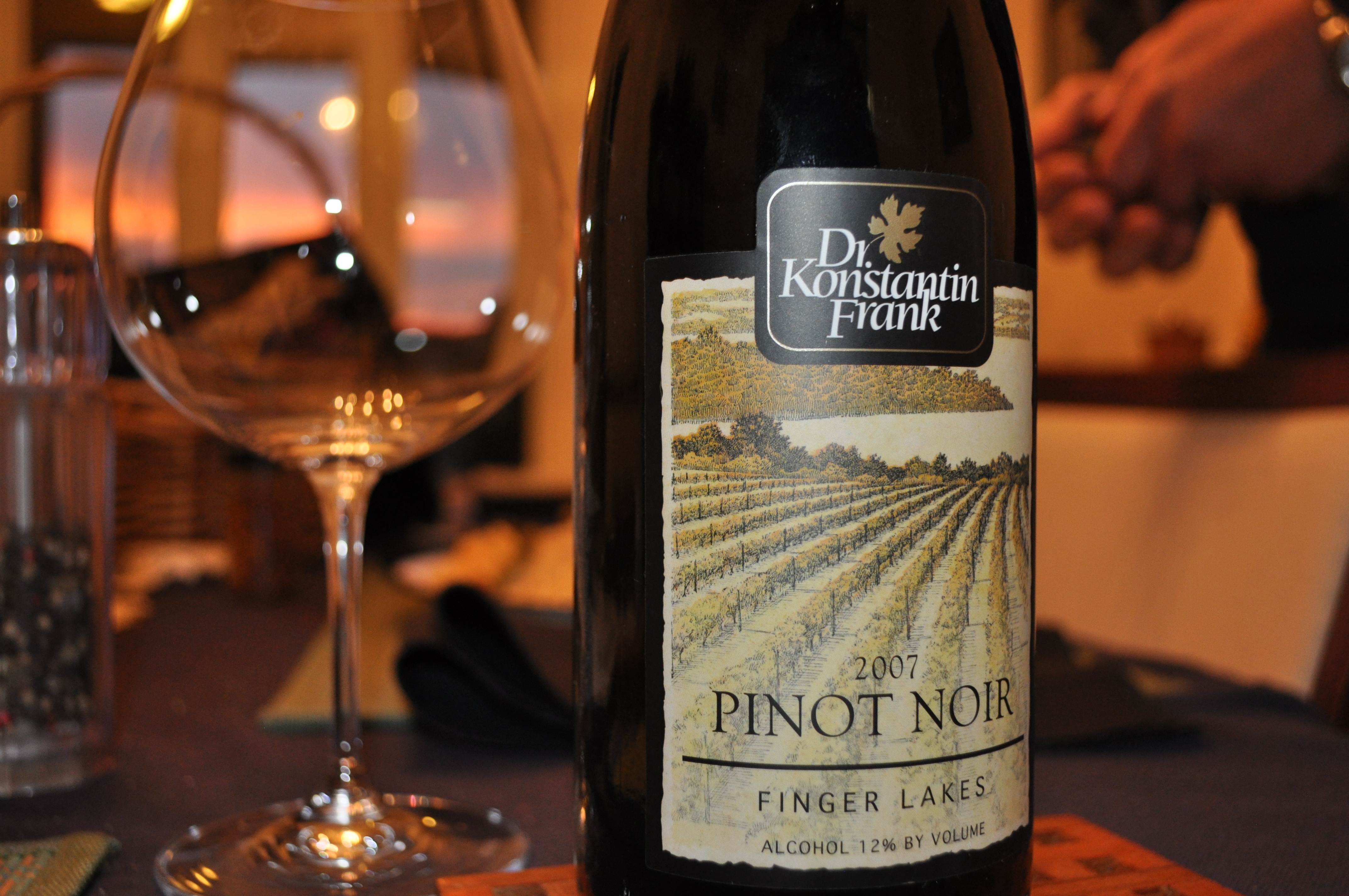 Complementing the meal, a Finger Lakes Pinot Noir. 2007 Konstantin Frank.